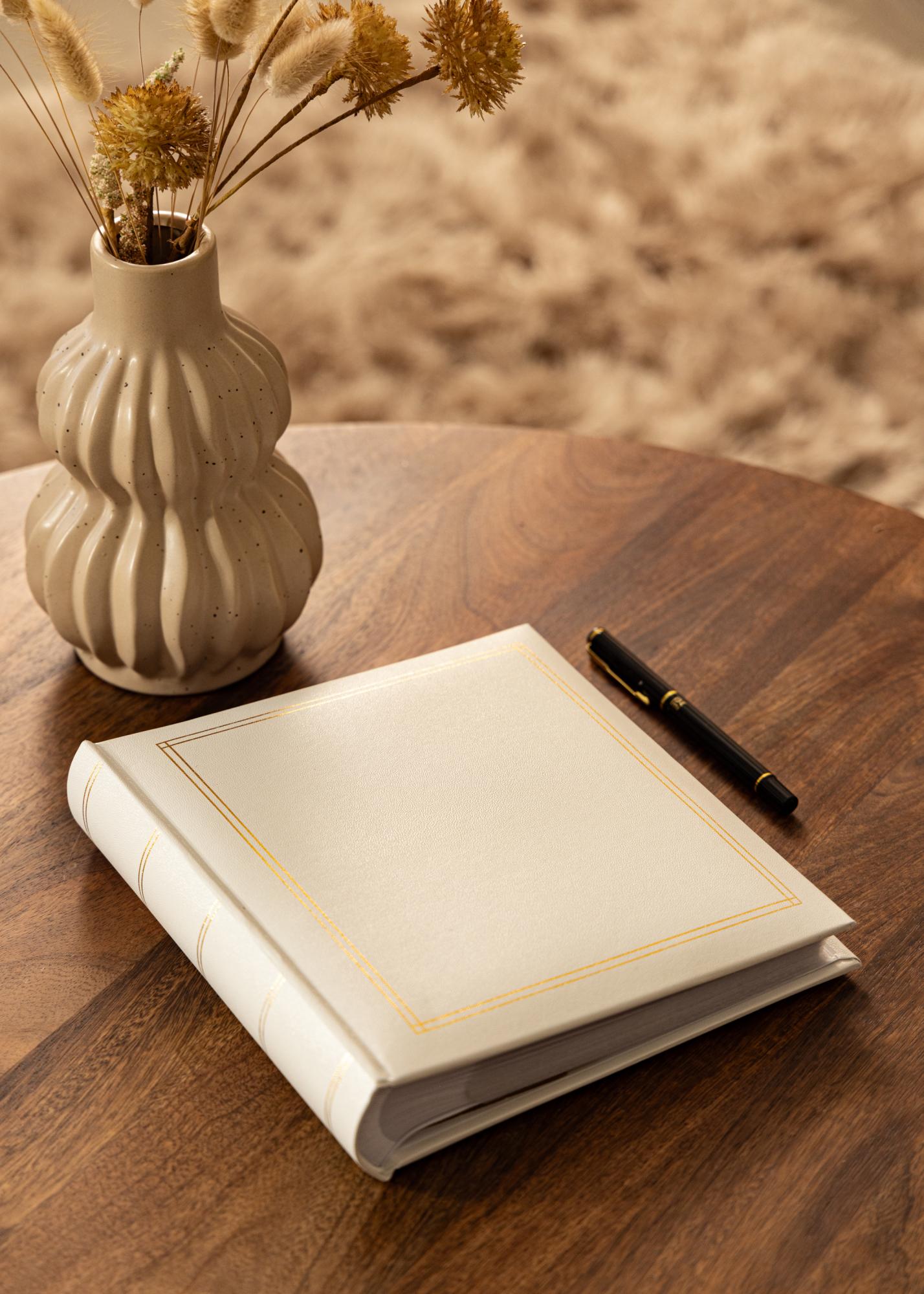 Съхранявайте любимите си снимки в класически и елегантен фотоалбум, който е в изискано бяло. Този квадратен албум има здрава и устойчива корица с двойни златни линии по краищата и на гърба. Вътре ще намерите джобове за 200 снимки с размери 10x15 см. Към всеки джоб има редове за писане. Стилен и удобен начин да организирате вашите спомени!