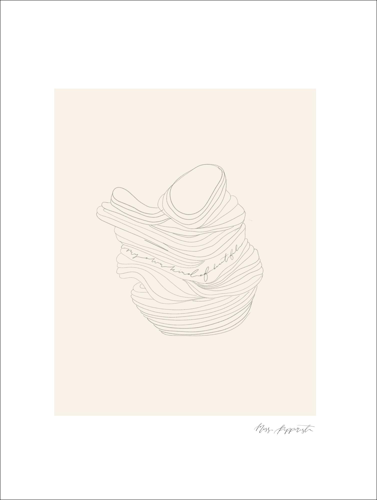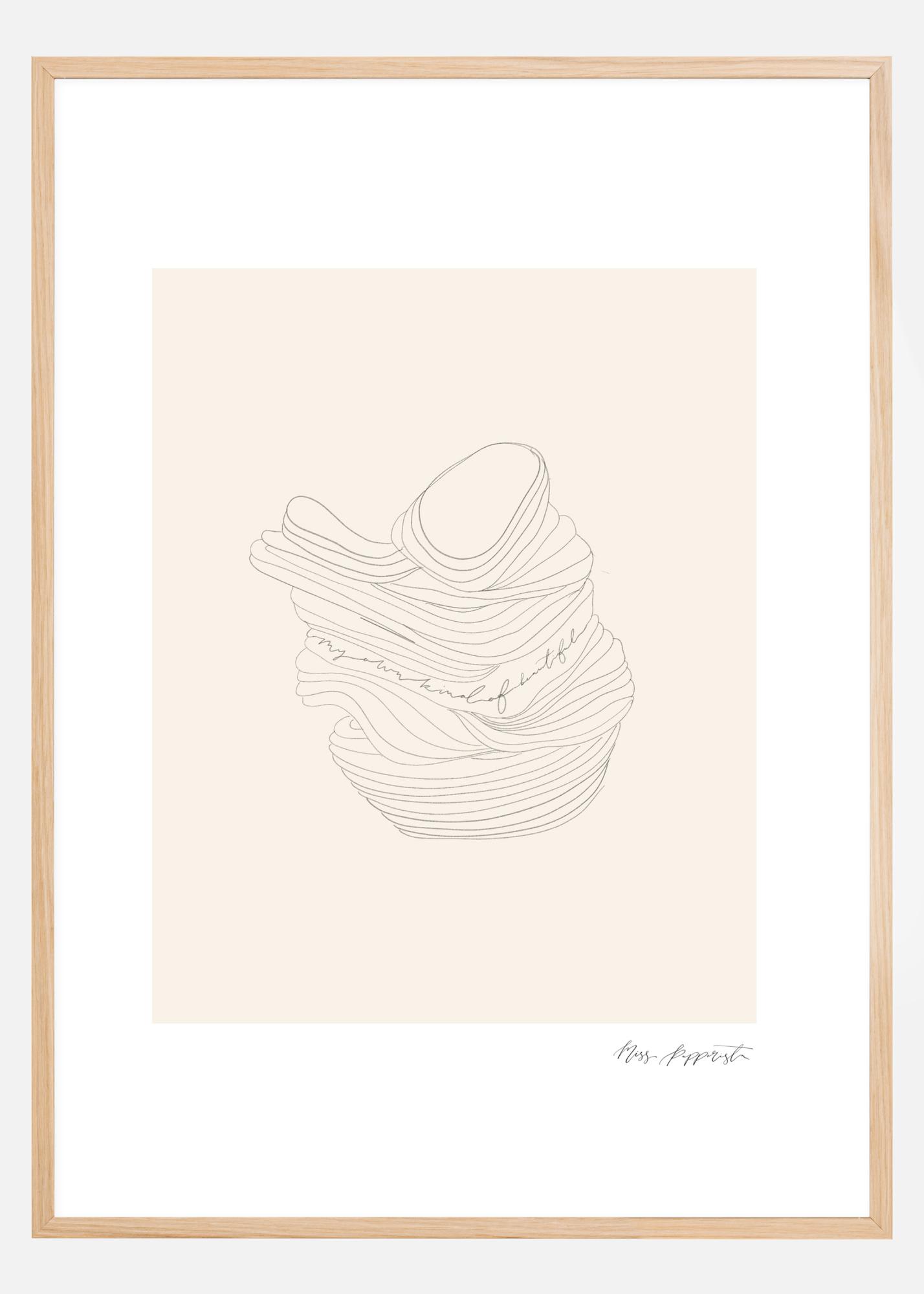 Интересна рисунка на подредени предмети. Бежов фон насочва погледа към рифелованата купа на картината. Перфектен печат за започване на разговор. Окачете този постер в дневната си и опитайте да разберете какви са подредените предмети.