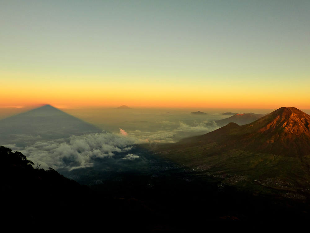 Изглед отгоре на облаци над остри планини по изгрев слънце. Жълто-оранжевите тонове в небосклона и тъмният преден план придават на изображението драматичен елемент, който го прави акцент. Картината се вписва във всички стилове на интериор с своя изчистен визуален език, комбинирайте я с рамка, която подчертава цветовете в картината.