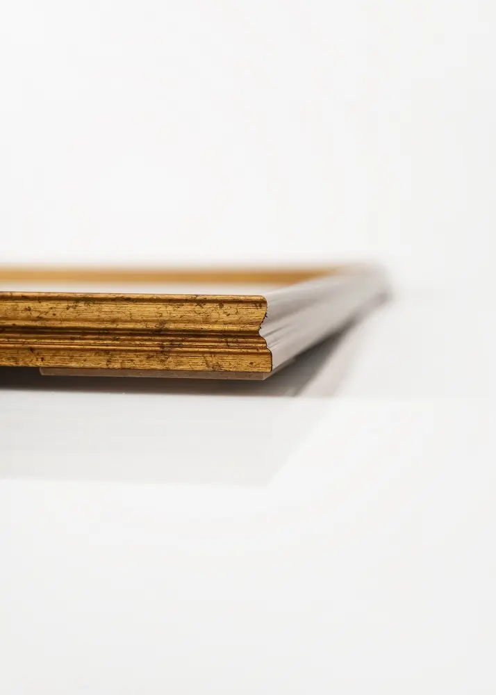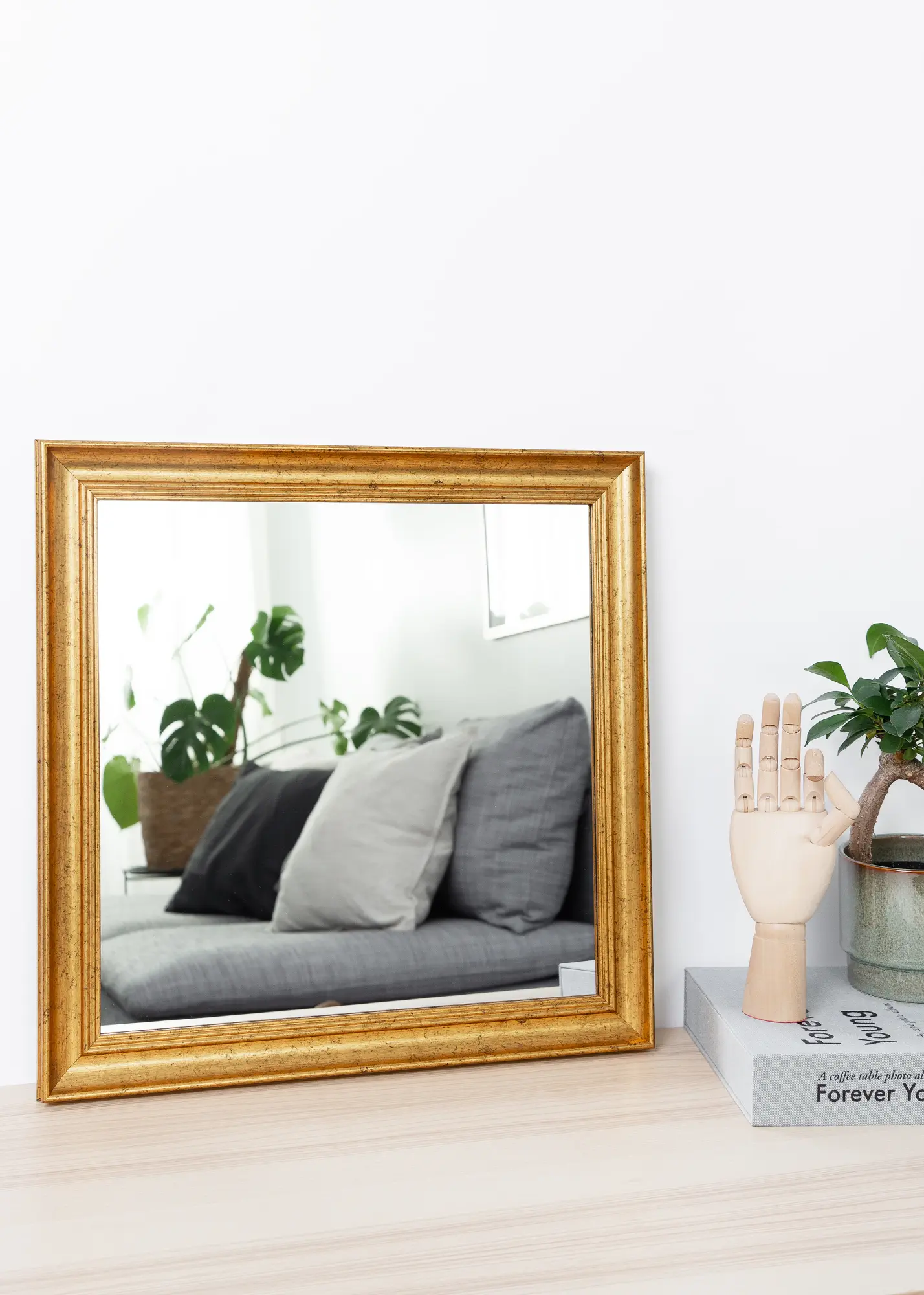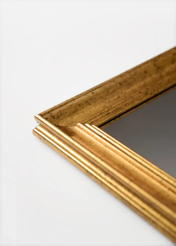 Стартирайте избора на рамка »Alice Guld е огледало, чиято рамка има класически строг дизайн с прави линии, изградени така, че да се фокусира върху мотивите.