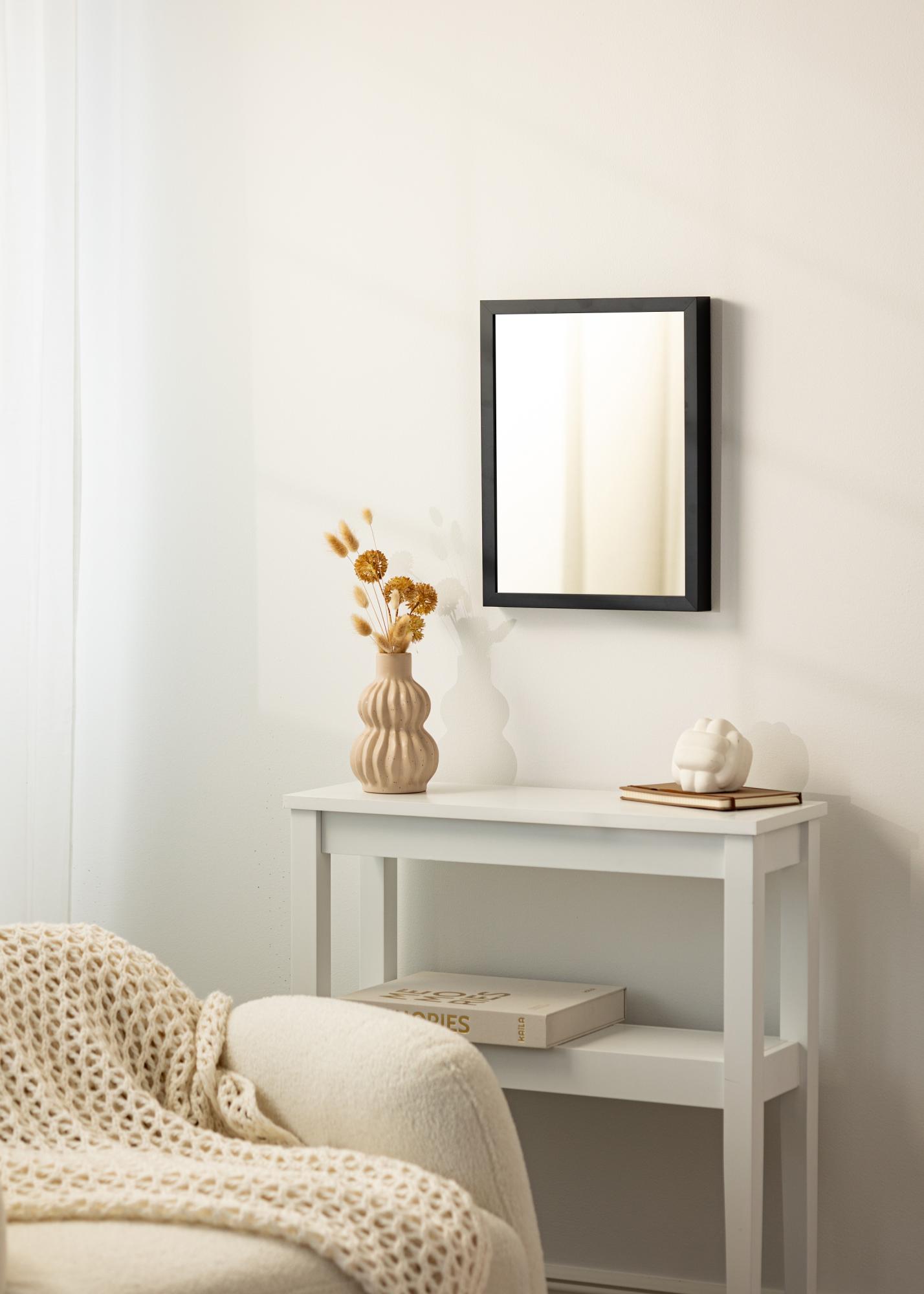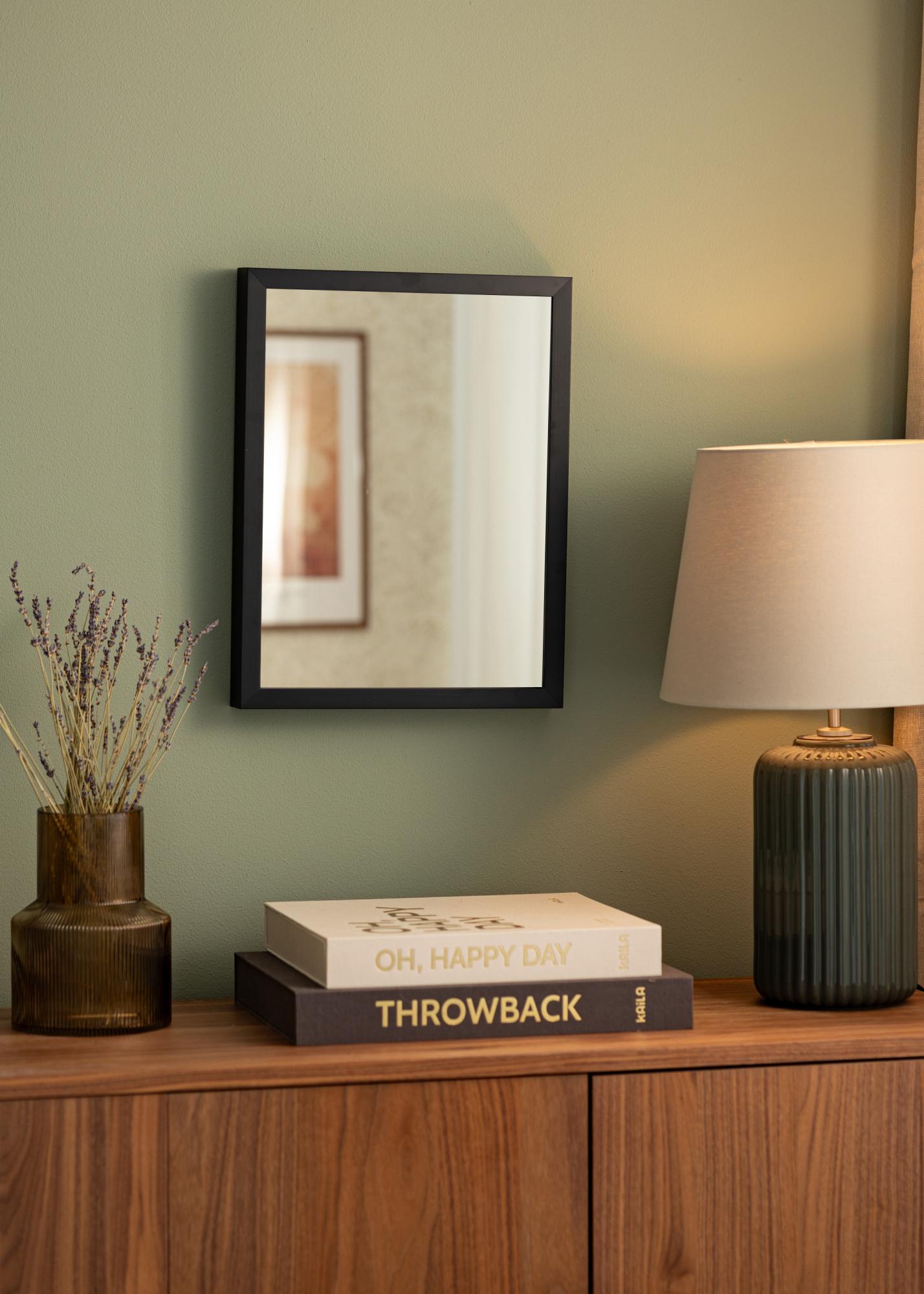 Рамката на Огледало Балдер Черно е с ширина 20 мм и придава на огледалото дискретна, но все пак изразена обрамка. Дълбочината от 45 мм придава на огледалото стабилно и здраво усещане, което го кара да изглежда добре и да се усеща солидно. Рамката е изработена от бор, устойчив материал, който допринася за усещането за качество на огледалото.