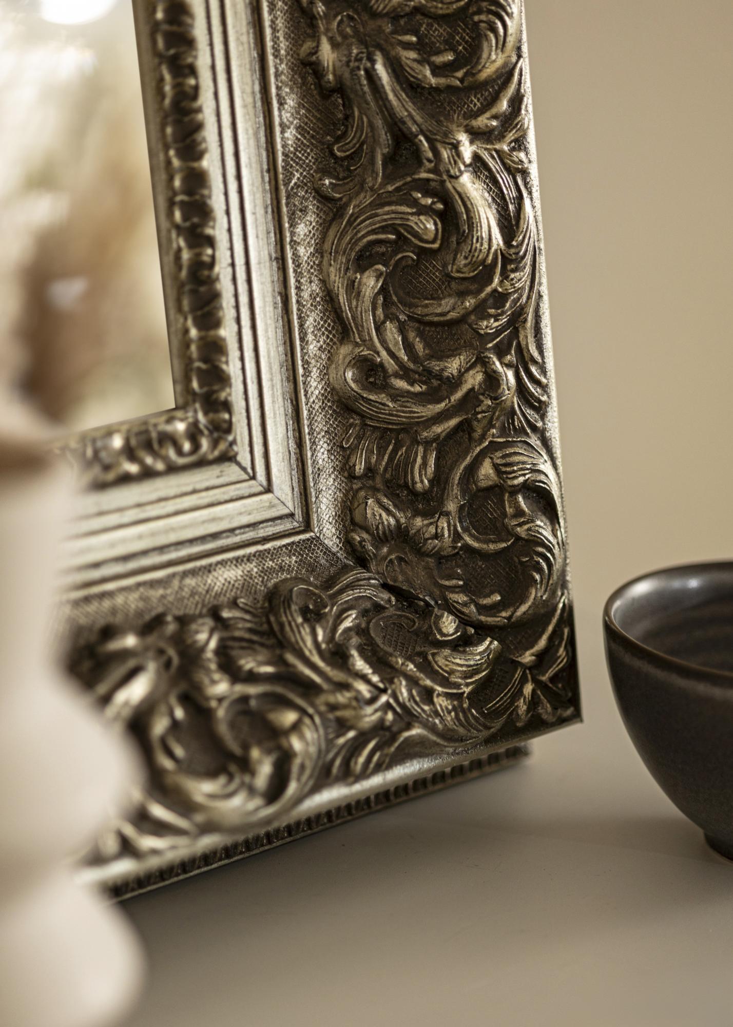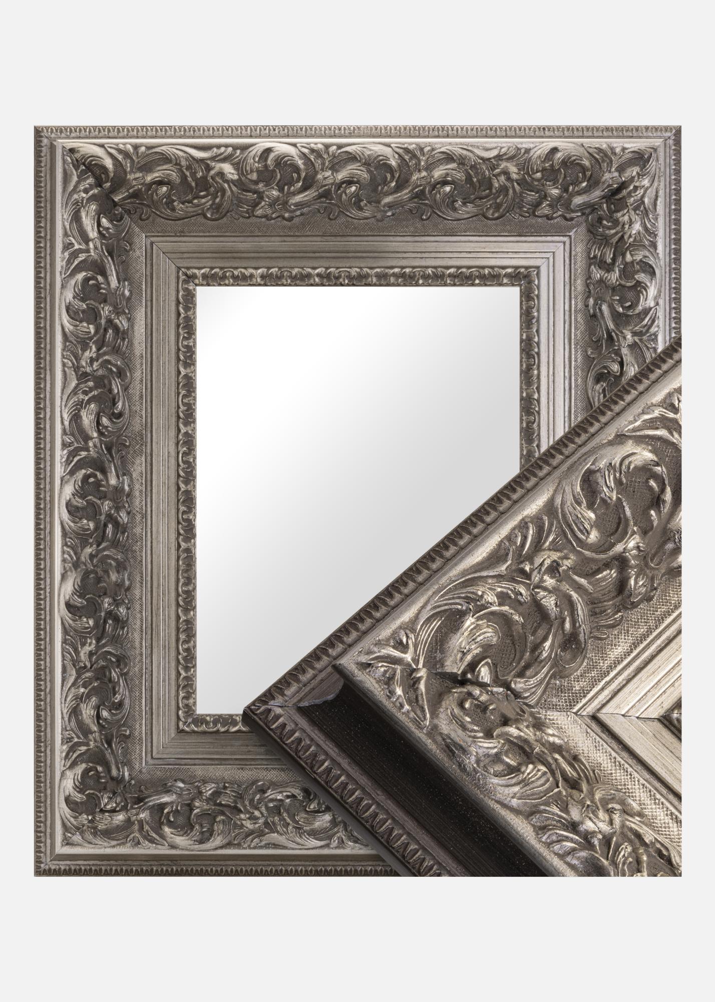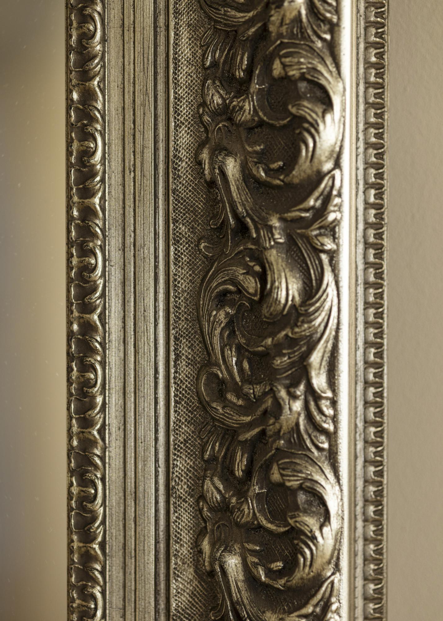 Огледало Birmingham Silver е огледало по поръчка, изработено от нас, което ви дава възможност да го получите в точно размерите, които пожелаете. Със своите впечатляващи 152 мм ширина на рамката и дълбочина от 74 мм, това огледало става впечатляващ детайл във всяка стая, където и да бъде поставено. Рамката е изработена от бор и има богато украсен дизайн в антично сребро, което придава на огледалото уникален характер.