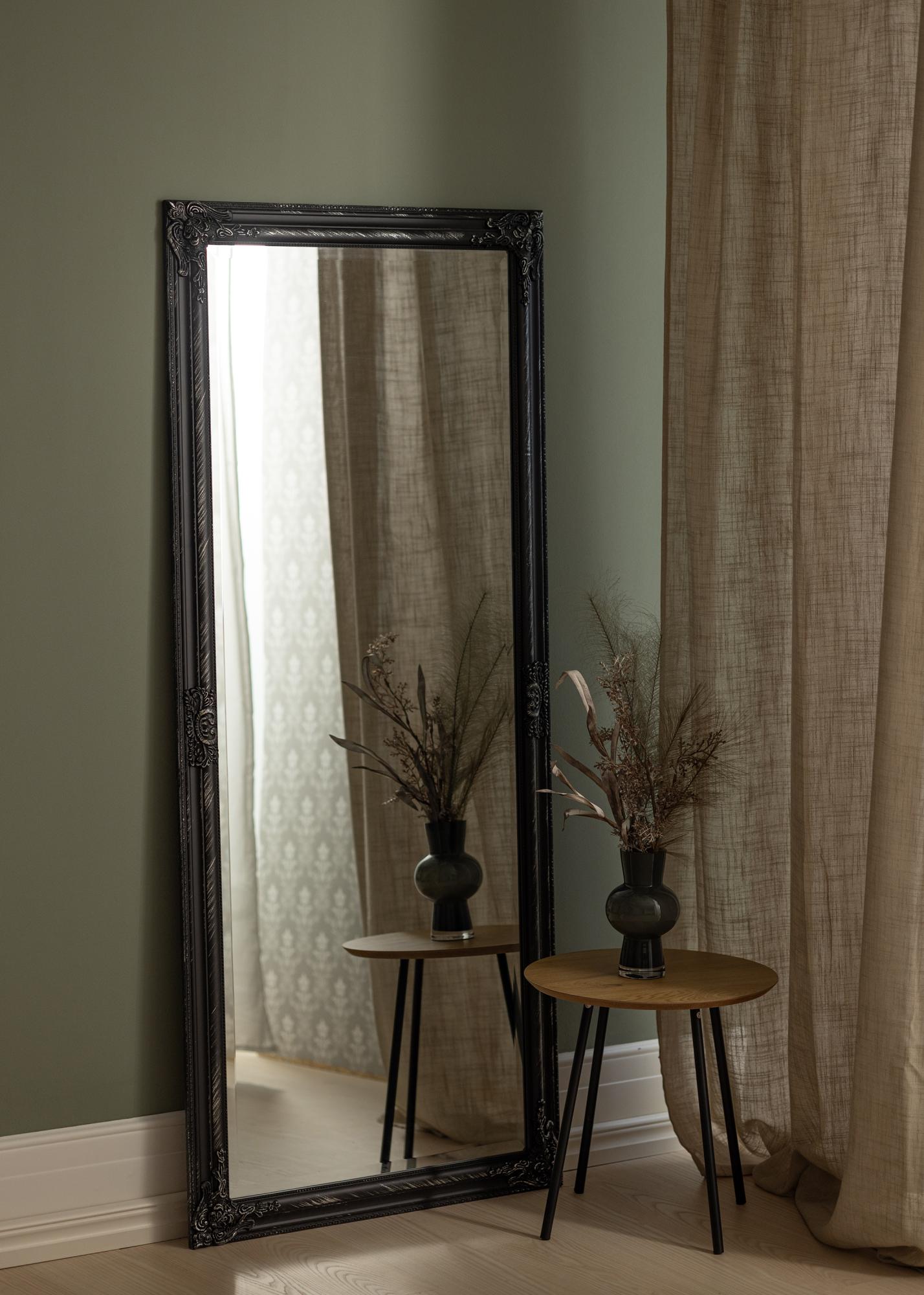 Открийте елегантния и изискан дизайн с нашето стоящо огледало, перфектно оразмерено до 70x160 см за пълно отражение. Това огледало представя стояща, правоъгълна форма, която допълва както модерните, така и традиционните стилове на обзавеждане. Черната рамка е внимателно проектирана с детайлен дизайн, който придава луксозно усещане на всяка стая.