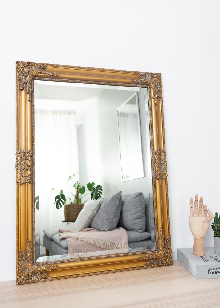 Огледалната серия Bologna Guld има латински дизайн с богата декорация в ъглите и в средните точки на страничните рамки. Малко по-тясна рамка от много други огледала в този стил. Рамката е изработена от дърво, а декорацията е отлята в гипс преди да бъде приложена върху рамката. Подходяща е перфектно като огледало за баня.