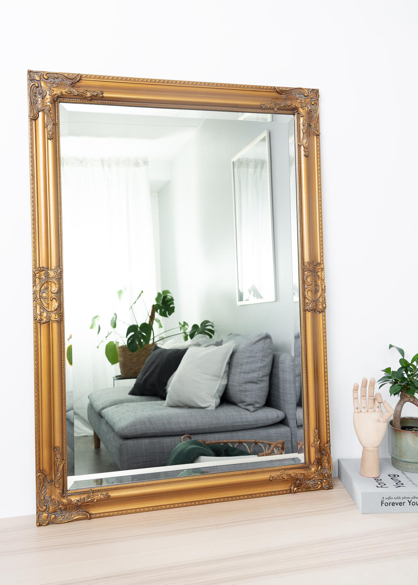 Серията огледала Болоня Злато има латински дизайн с богат декор в ъглите и на средните точки на страните на рамката. Малко по-тясна рамка от много други огледала в този стил. Рамката е изработена от дърво, а декорът е излят от гипс, преди да бъде приложен върху рамката. Подходяща е идеално като огледало за баня.