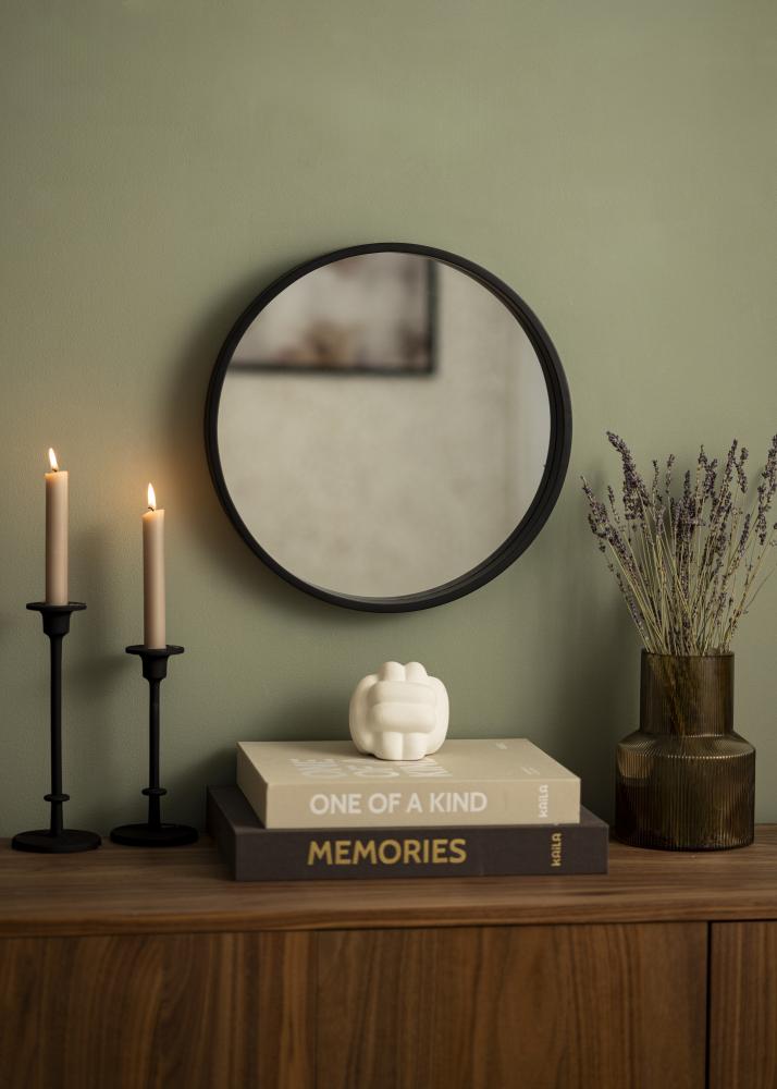 Стартирайте избора на рамка »Елегантно изработено кръгло черно огледало в различни размери. Един от нашите фаворити сред огледалата.