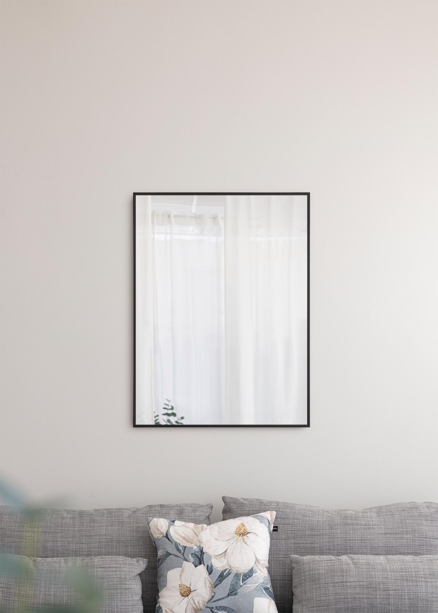 Това стен огледало е перфектната комбинация от стил и функция. Рамката е изработена от алуминий и е едва 10 мм широка, което придава елегантен, минималистичен вид. Огледалото е част от поредица стенни огледала в различни цветове и размери, от които този модел е черен вариант с размер 61,1x81,1 см.