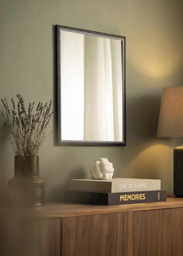 Рамката на огледало Cornwall Черно е с ширина 23 мм и дълбочина 13 мм, което му придава тънък и стилов профил. Изработена от Ayosträ, рамката подчертава естествения характер на дървото с ясно видими съседи и рустикално усещане. Тази комбинация от материали и дизайн създава огледало, което не само е функционално, но и красива декорация.