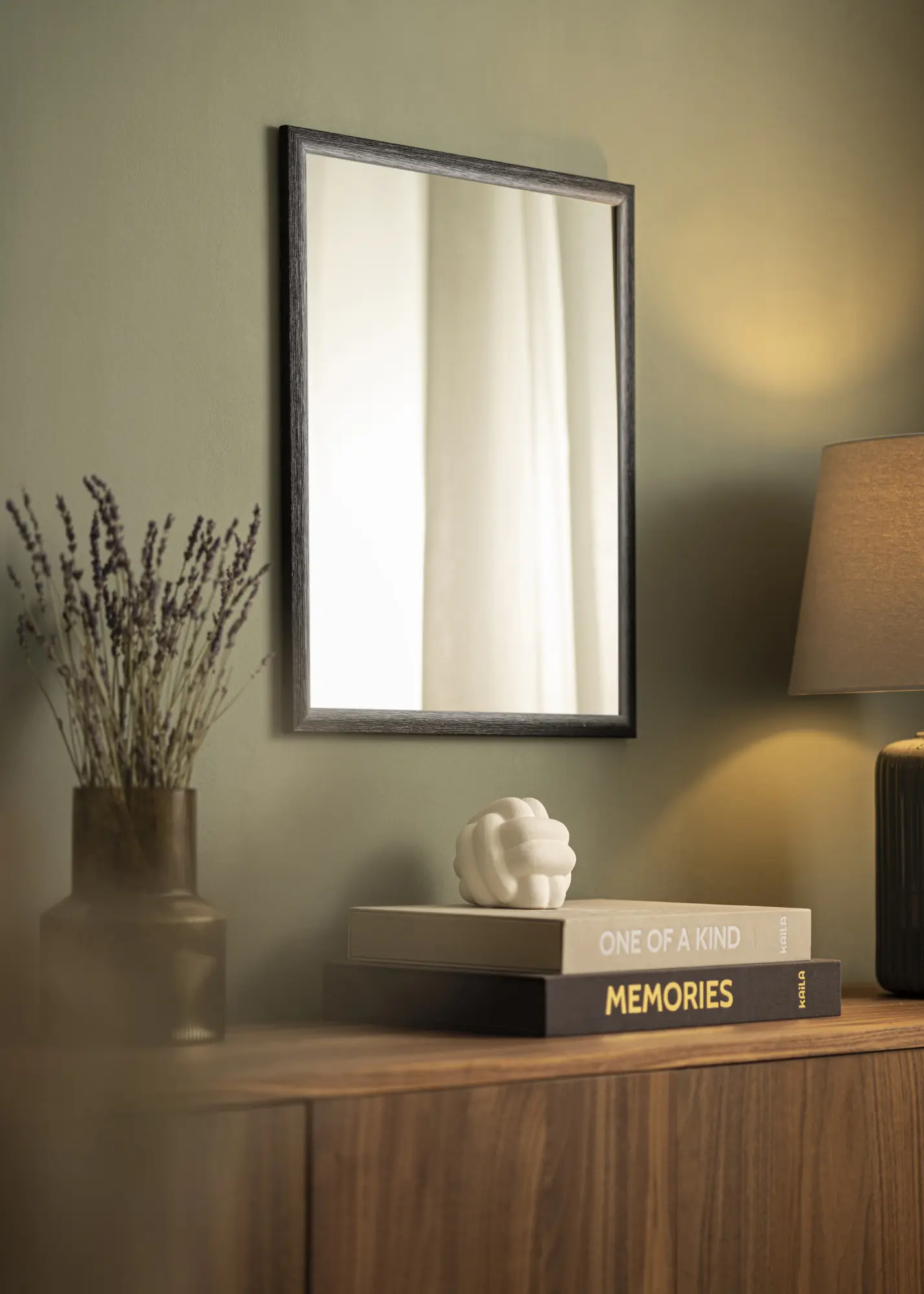 Повърхността на огледалото има лека сатенена завършек, който придава фин блясък, без да бъде твърде лъскав. Това позволява на огледалото да отразява светлината по мек и приятен начин, което допринася за създаването на по-светла и по-приветлива атмосфера в стаята. Безвременната естетика на огледало Cornwall Черно го прави перфектен комплимент във всичко - от хол и спалня до вестибюл и баня.