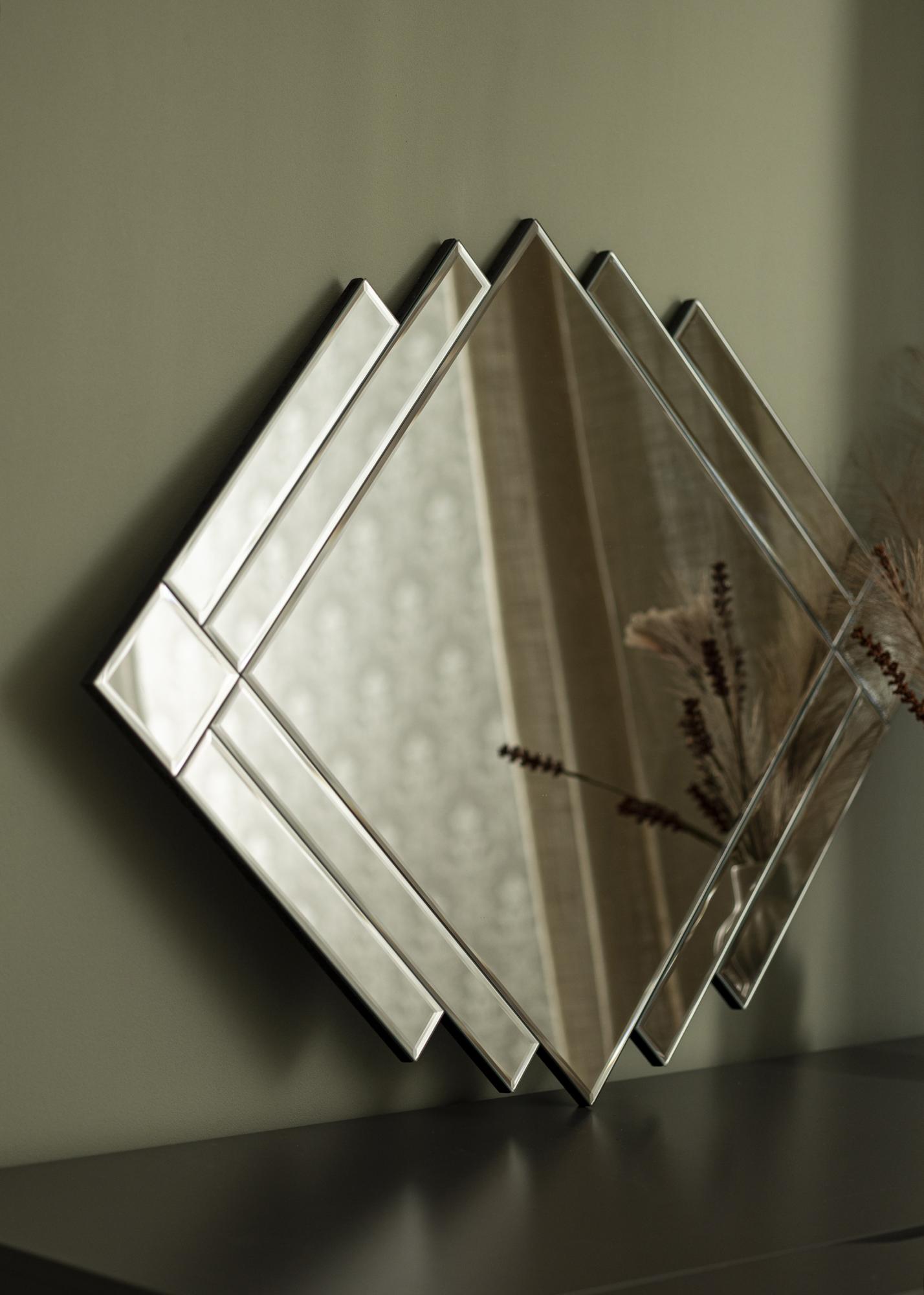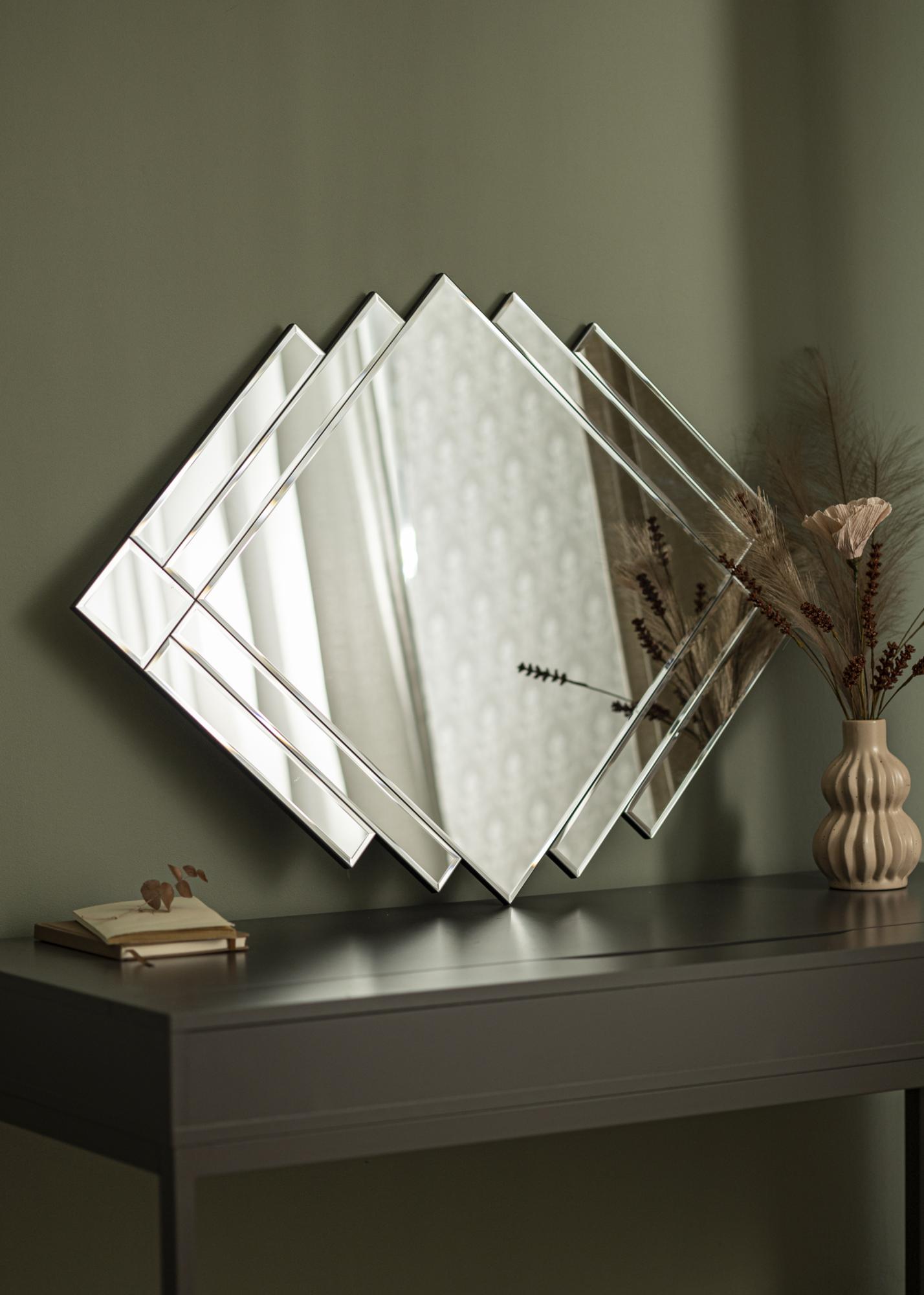 Открийте огледало, което нарушава нормата и добавя артистичен акцент във вашия дом. Със своите многофасетни огледални секции, това огледало предлага необичайна и привличаща вниманието форма, която със сигурност ще бъде начална точка за разговор. Размерът му от 71x99 см го прави великолепно зрелище, независимо къде е поставено.