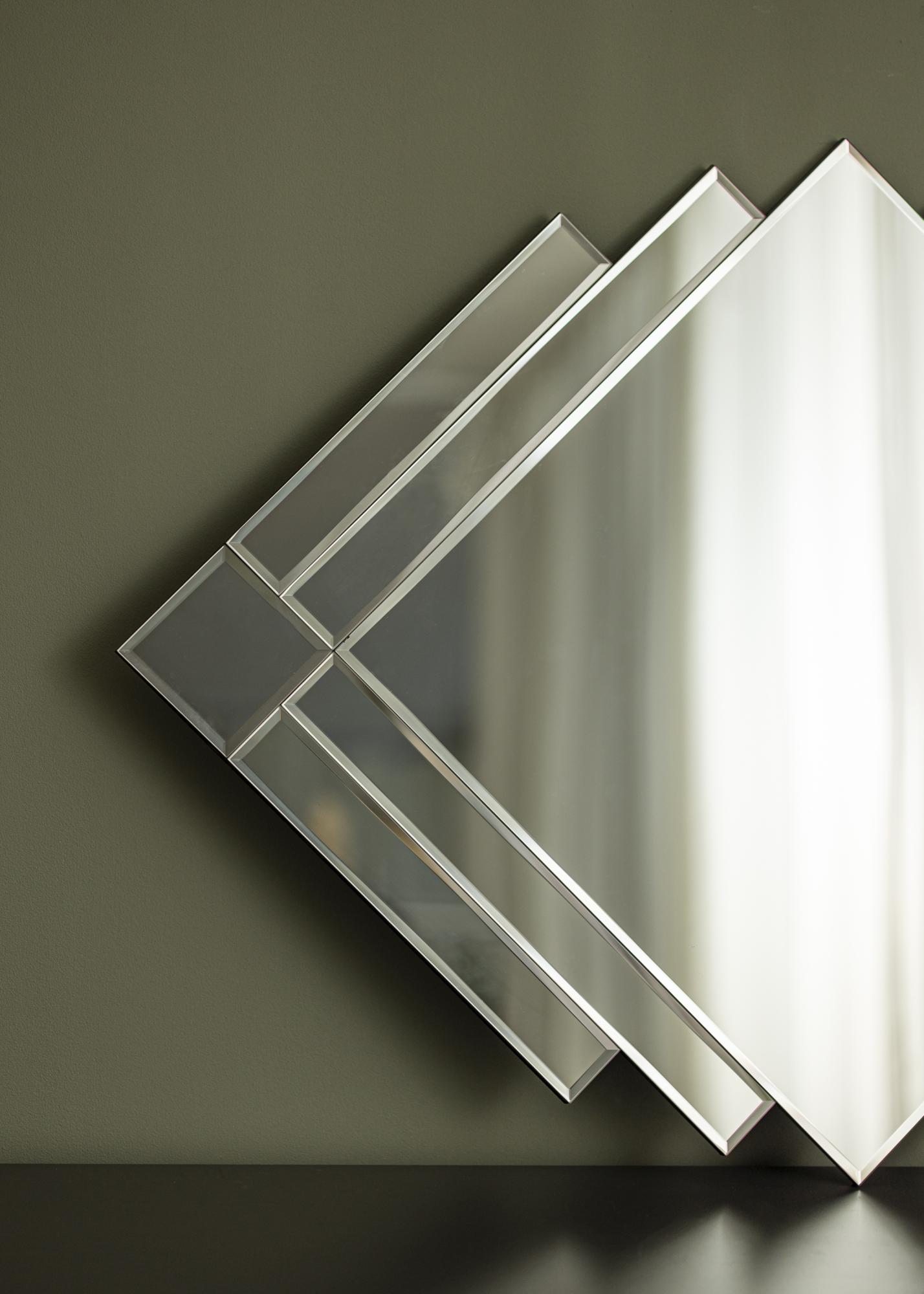 Със своята модерна геометрична композиция огледалото е не просто функционален артикул; то е парче съвременно изкуство. Отлично се вписва в минималистична среда или като контрастираща подробност в по-традиционна обстановка. Нека това огледало стане специалния акцент, който завършва вашата стая със стил и елегантност.