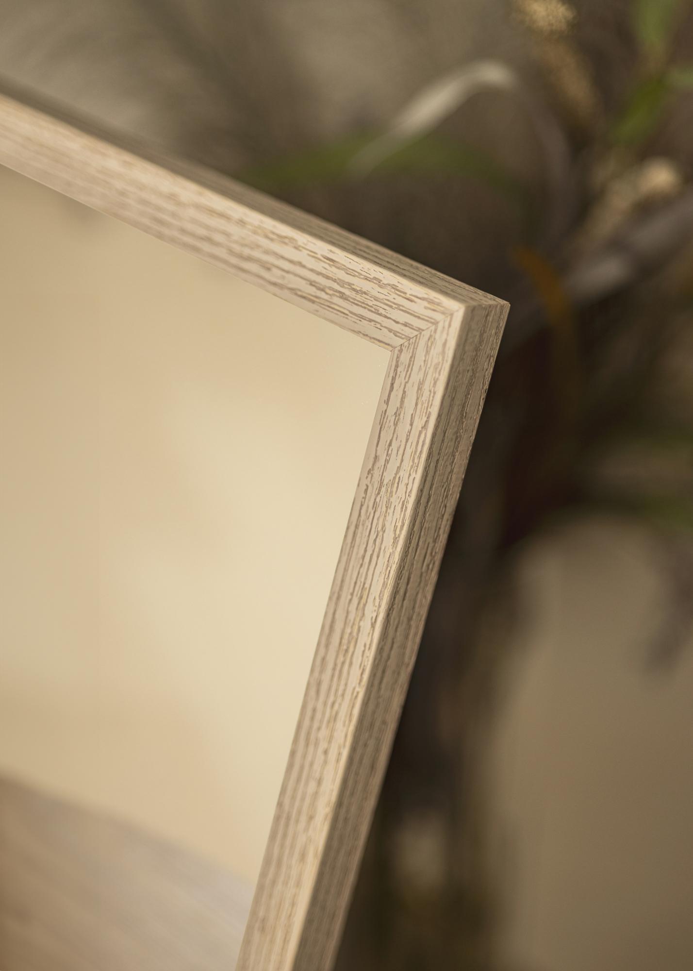 Рамката на огледалото е с ширина 20 мм и дълбочина 20 мм, което осигурява дискретна, но ясна рамка на огледалото. Изработено от айос дърво, това огледало е и издръжливо, и леко, което улеснява поставянето и окачването му. Матова повърхност подчертава детайлите на текстурата и създава меко впечатление, което допълва цялостния дизайн на огледалото.