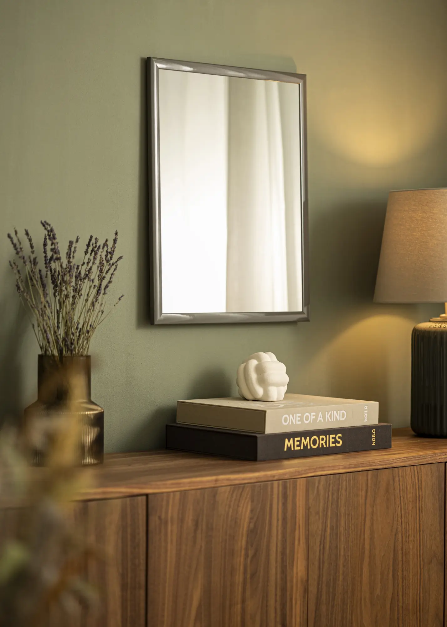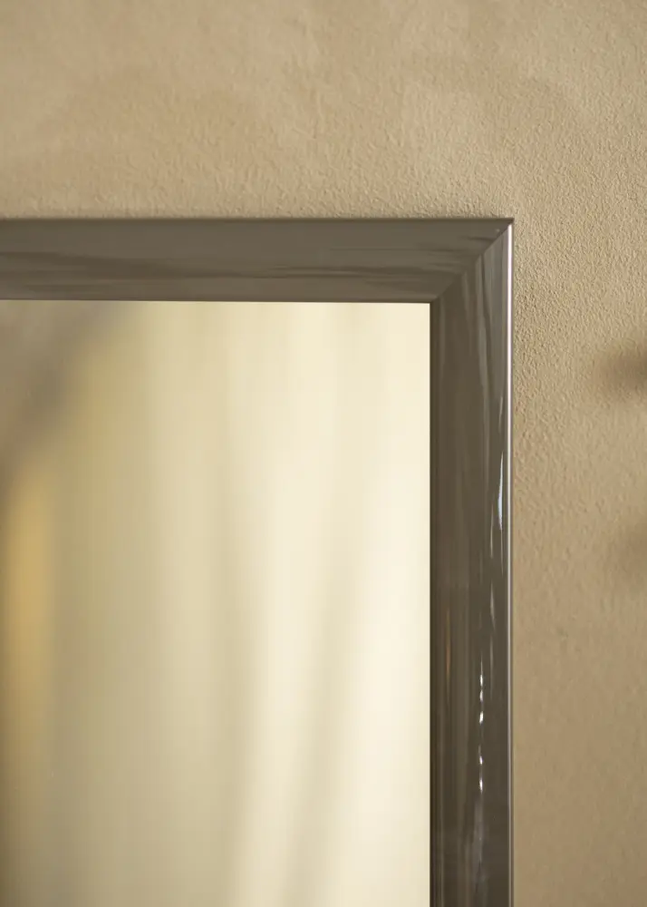 Огледало Dorset Сиво е огледало по поръчка, което произвеждаме ние, което ви дава възможност да получите огледало, което перфектно пасва на вашия дом. Със своя елегантен сив цвят и високо гланцово покритие, то става стилно допълнение към всяка стая. Сивият нюанс отразява светлината по начин, който създава изтънчен блясък и придава на стаята модерен усещане.