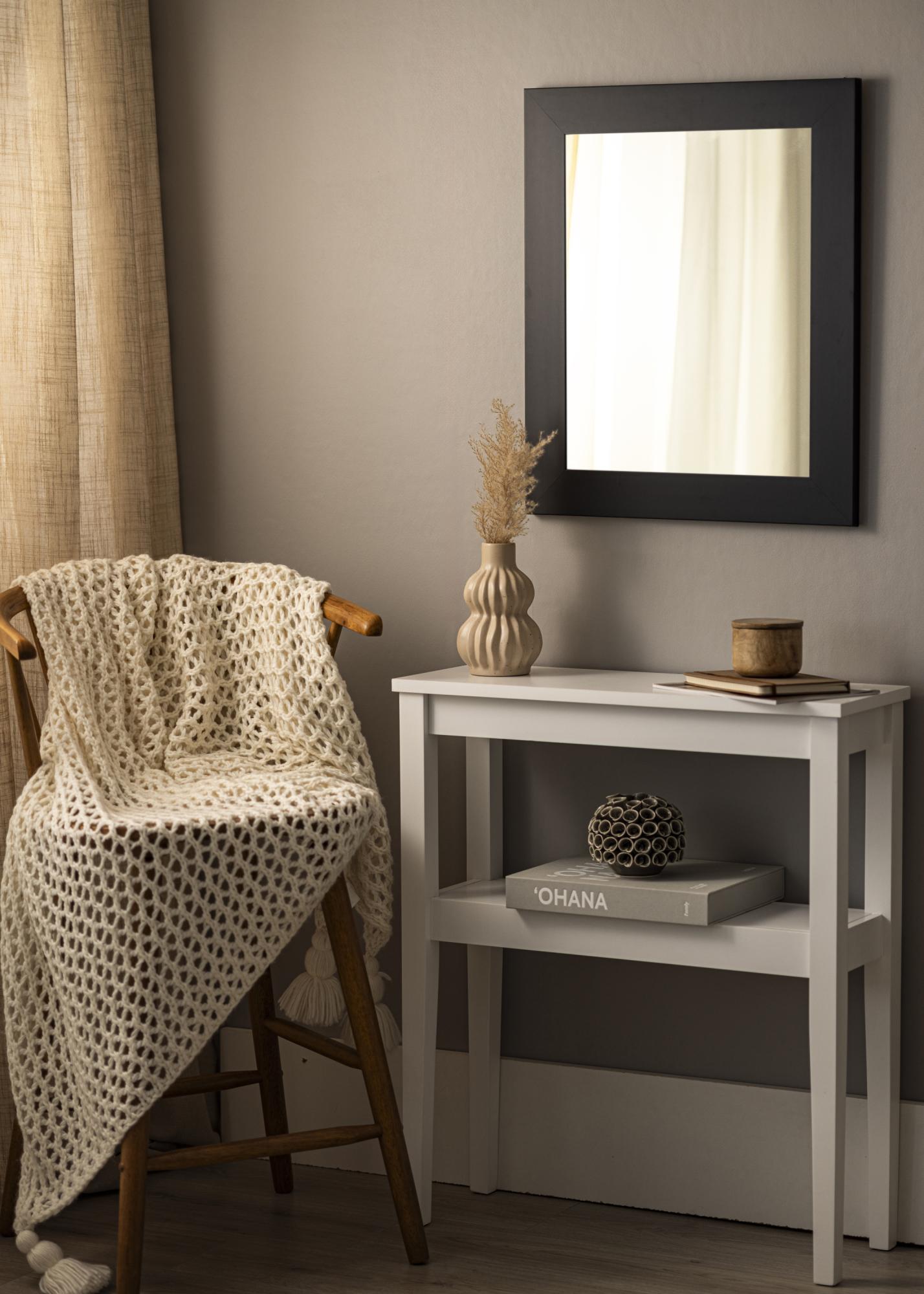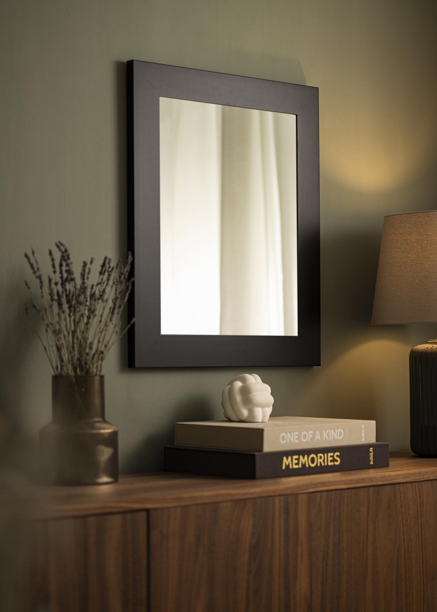Това огледало е с елегантен черен цвят, който създава модерно и стилно впечатление. Рамката с ширина 69 мм от матово черно Ayosträ допринася за изискания външен вид на огледалото и го прави отлично допълнение както към класически, така и към модерни стилове на обзавеждане. С дълбочина 22 мм, огледалото има здрава конструкция, която гарантира неговата издръжливост и стабилност.