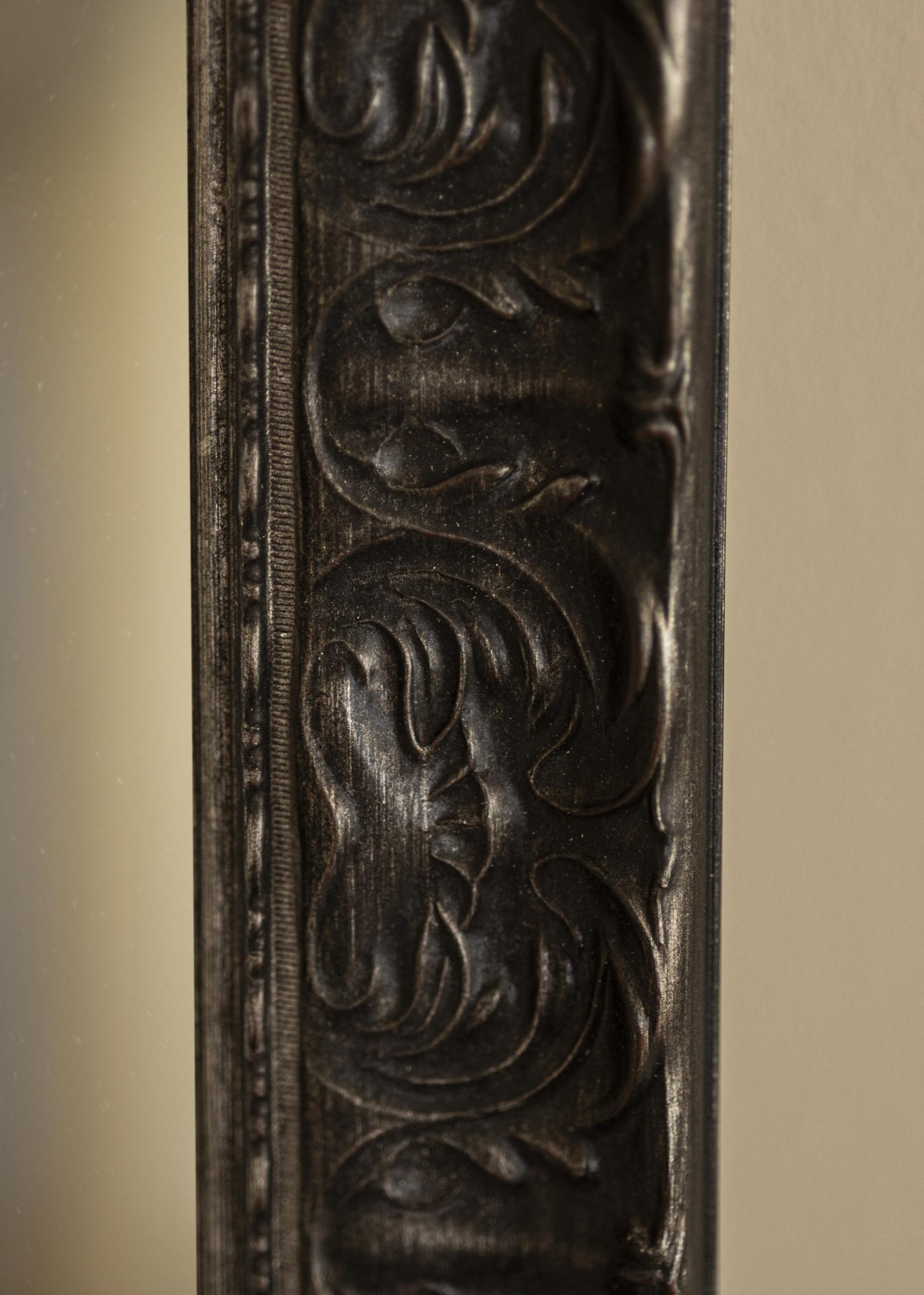 Огледало Durham Черно е елегантно и стилно огледало, произведено от нас с голяма грижа и прецизност. Това огледало е перфектно за вас, ако търсите уникален интериорен детайл, който може да бъде адаптиран според вашите специфични размери. Със своя черен цвят и декоративен релеф, то предлага дизайн, който е едновременно безвременен и подходящ за повечето домове и среди.