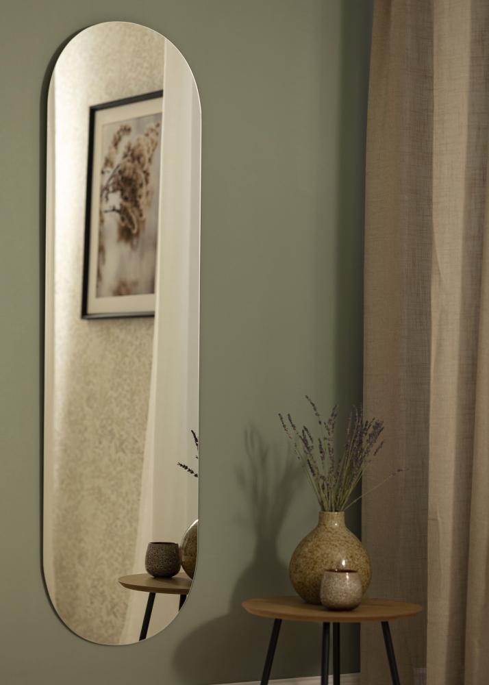 Открийте елегантното и многофункционално стенни огледало, което е създадено да допълва всяка стая в дома ви. Със своите щедри размери от 40x140 см, това огледало предлага практична и декоративна функция във вашето пространство. Неговата органична и удължена форма със заоблени краища и мека извивка в горната част придават модерен и мек вид, който се вписва в различни интериорни стилове.