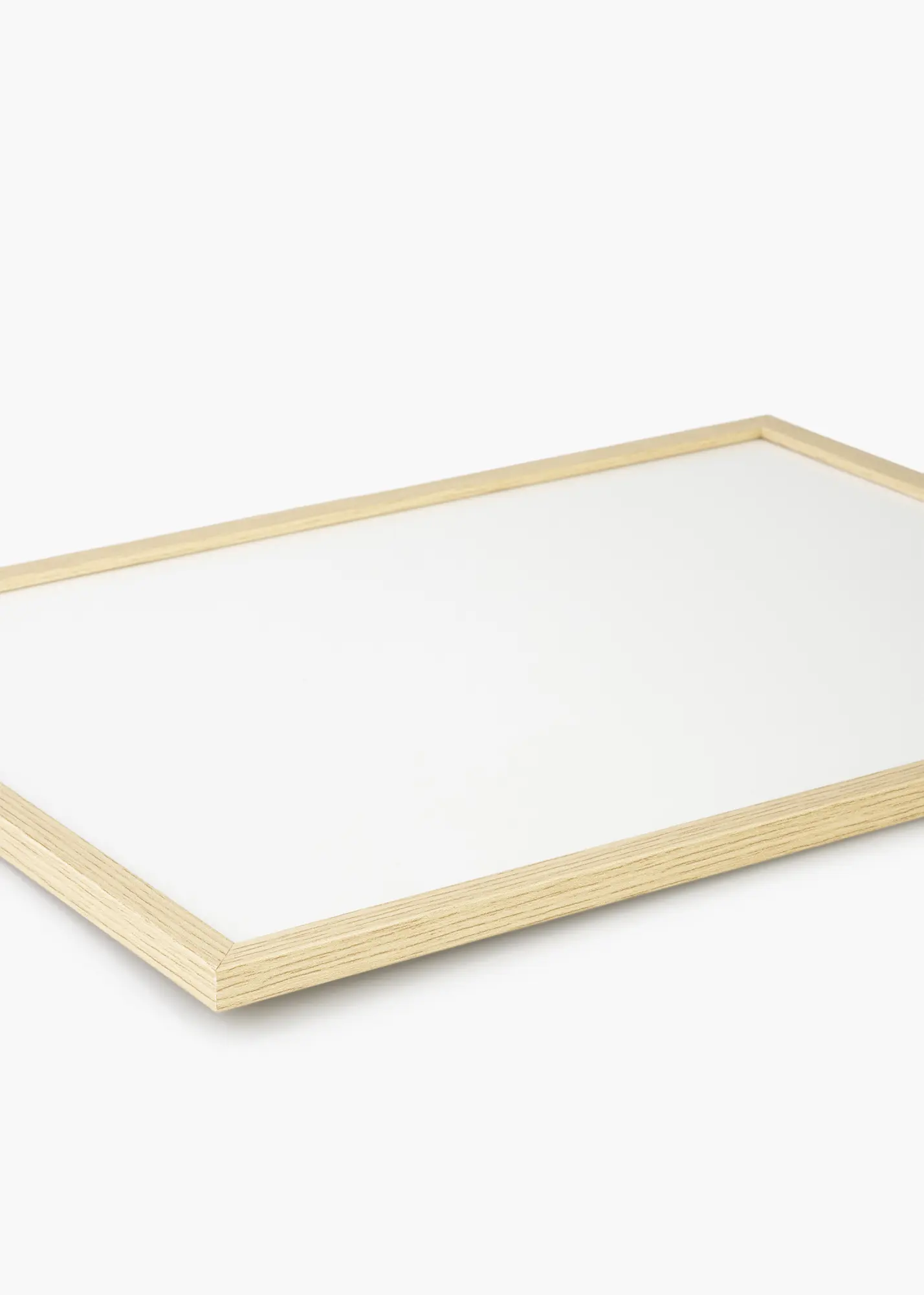 Дъбовият покритие придава на огледалото естествен и изчистен вид, който пасва в повечето интериорни стилове. Рамката с ширина 13 мм обрамчва огледалото по елегантен начин, без да отнема вниманието от самата огледална повърхност. С дълбочина от 12 мм огледалото има тънък профил, който го прави лесен за поставяне дори в по-стеснени пространства.