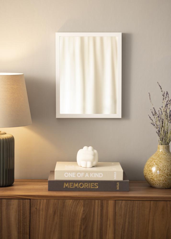 Gävle Бял има солидна дървена рамка с дълбочина от цели 31 мм, което прави така, че огледалото да се отдалечава от стената.