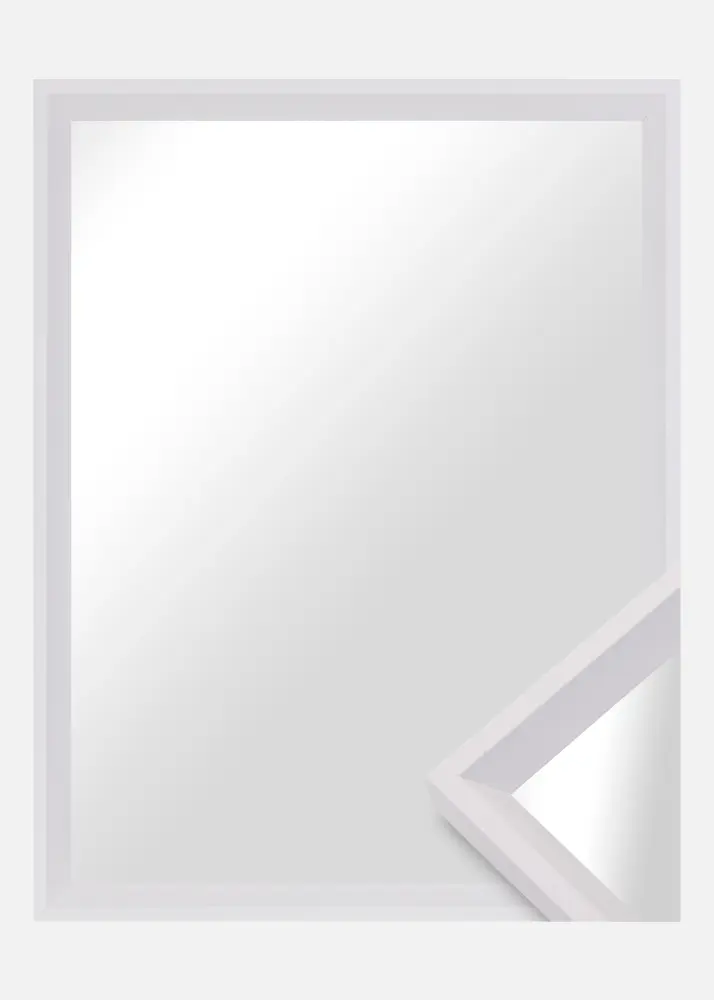 Модерно огледало в бяло, което работи еднакво добре в по-малки размери в стена за картини или като голямо огледало за коридор.