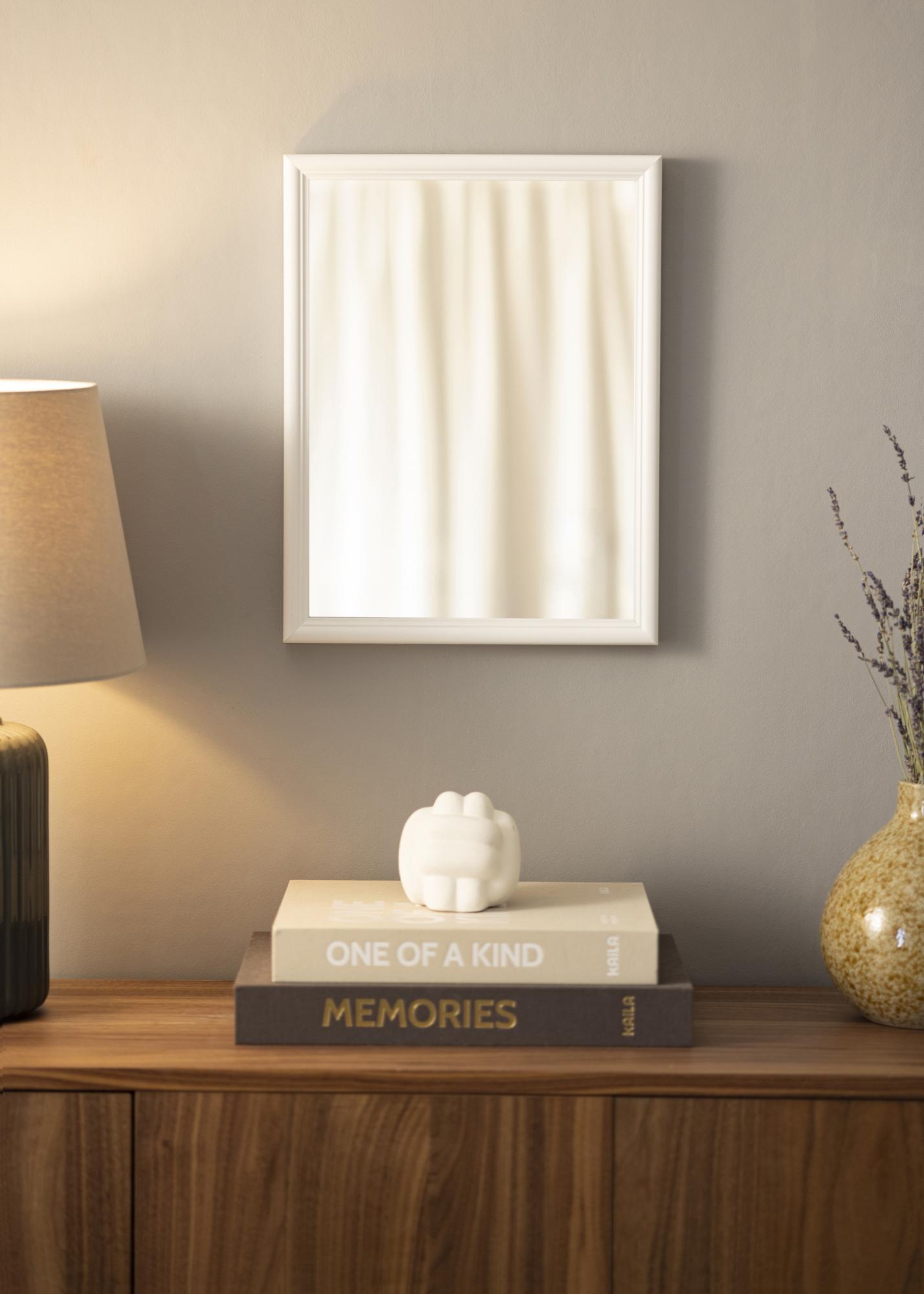 Högbo е красиво профилирано бяло огледало с високо качество, което е отличен избор, когато търсите елегантно огледало с дълбок профил, който излиза от стената.
