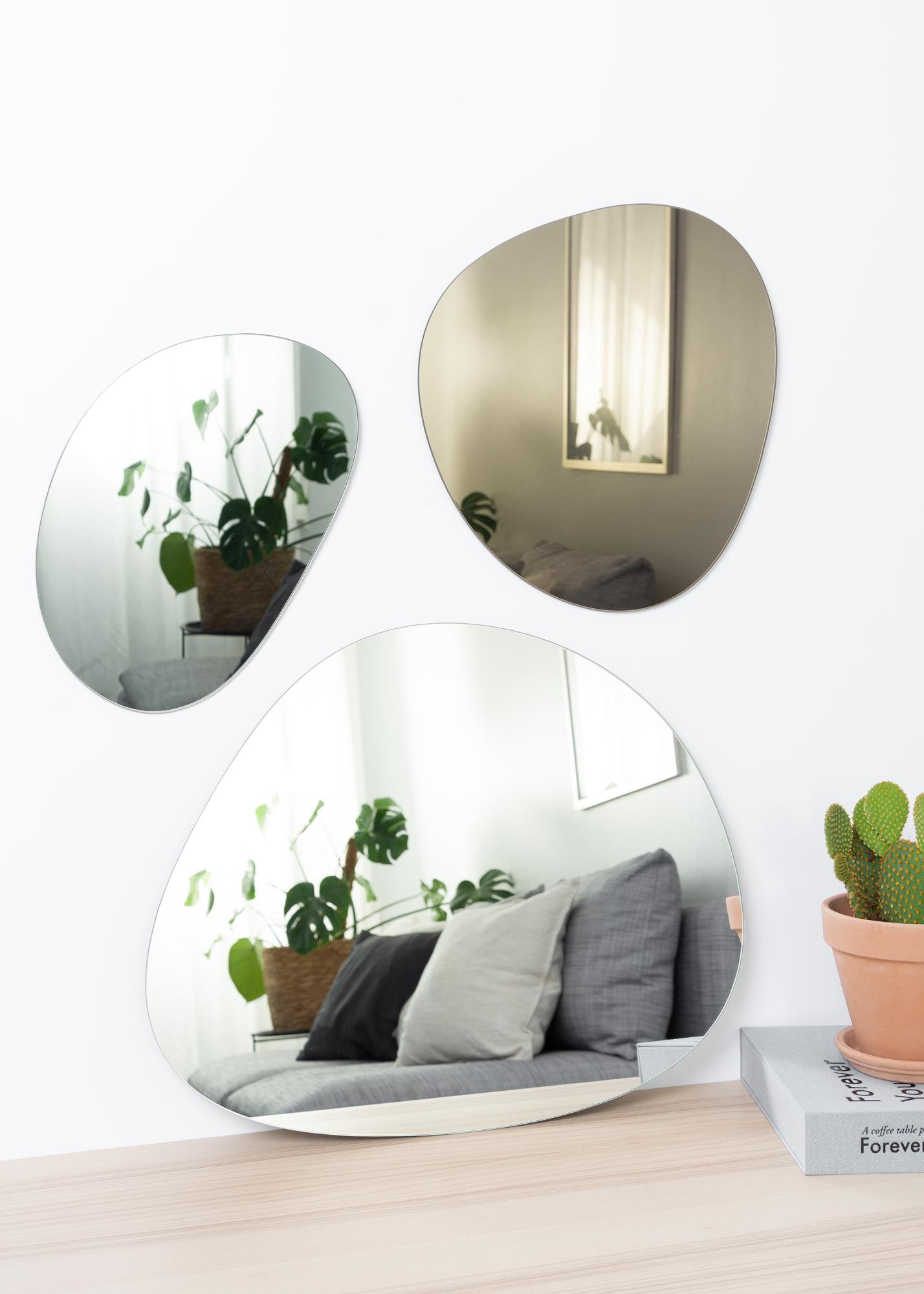 Това е вкусен комплект огледала с 3 броя сиви огледала. Те са в различни размери, за да бъде по-забавно, когато се поставят на стената. Различните размери на тези огледала изглеждат добре едно до друго и пасват много добре на стената, независимо от размера на стаята.