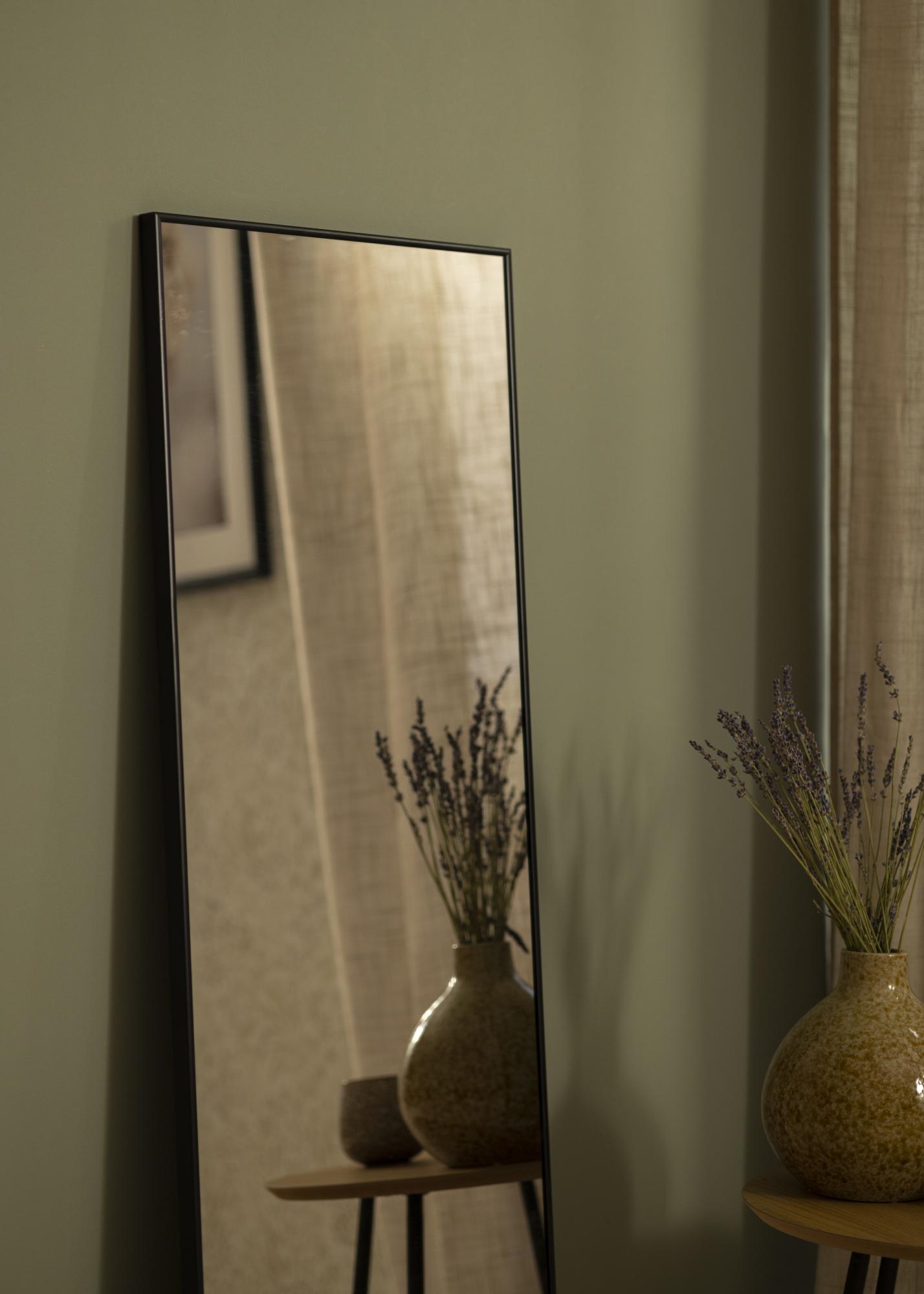 Със своето стоящо ориентиране, огледалото е идеално за тесни пространства или като огледало за цял ръст в спалнята или в коридора. Черната рамка допълва различни стилове на интериор и цветови схеми, което го прави универсален детайл за интериора. Огледалото не е само красив детайл, но и практичен инструмент за създаване на светлина и пространство във вашия дом.