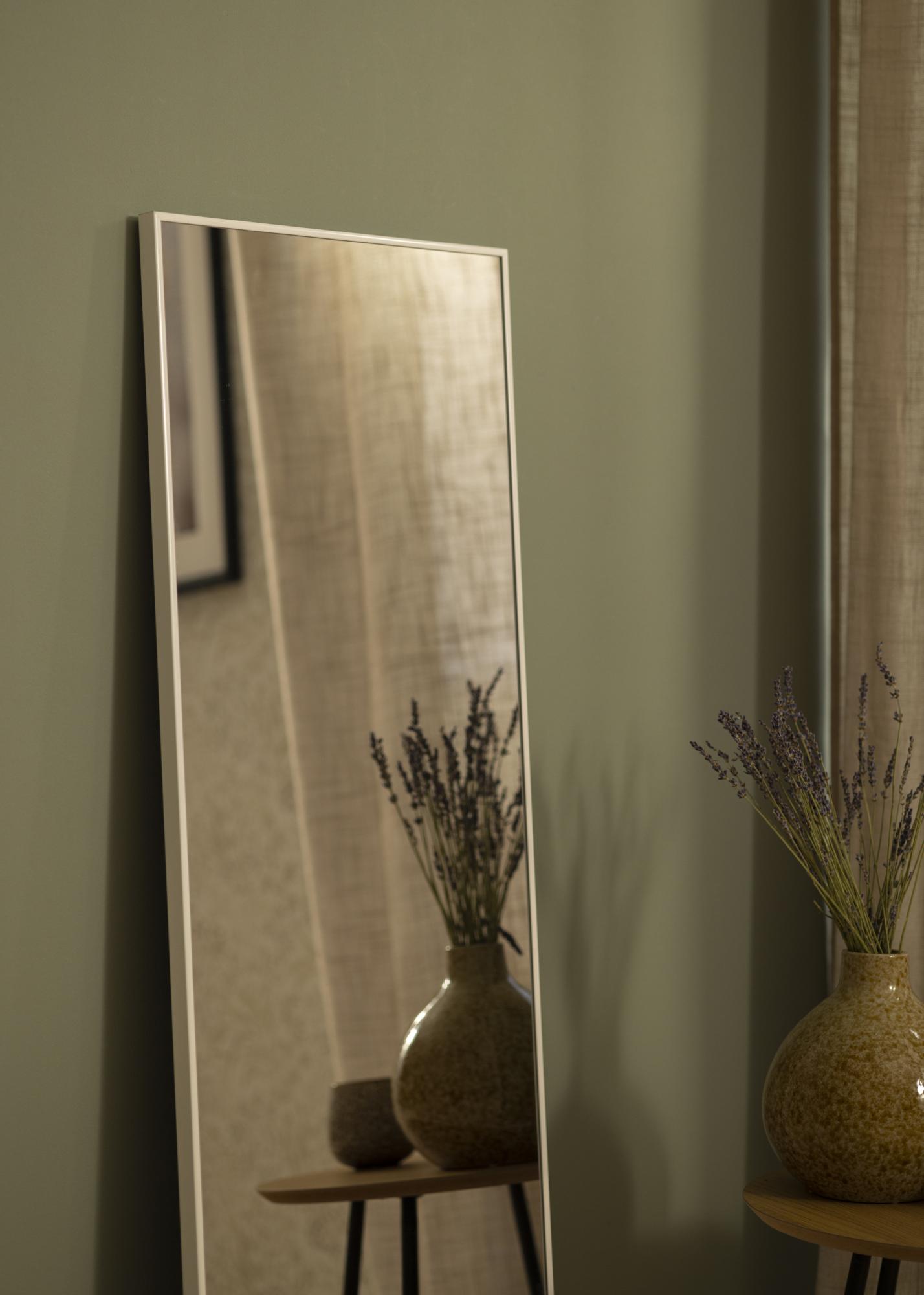 Открийте стилната елегантност на нашето правоъгълно огледало, перфектно проектирано да придаде на пространството ви усещане за простор и светлина. Със своите щедри размери 45x125 см, огледалото предлага практична и декоративна функция във вашия дом. Бялата алуминиева рамка обгръща огледалното стъкло с простота и модерност, което го прави вкусно допълнение както в коридора, така и в спалнята.