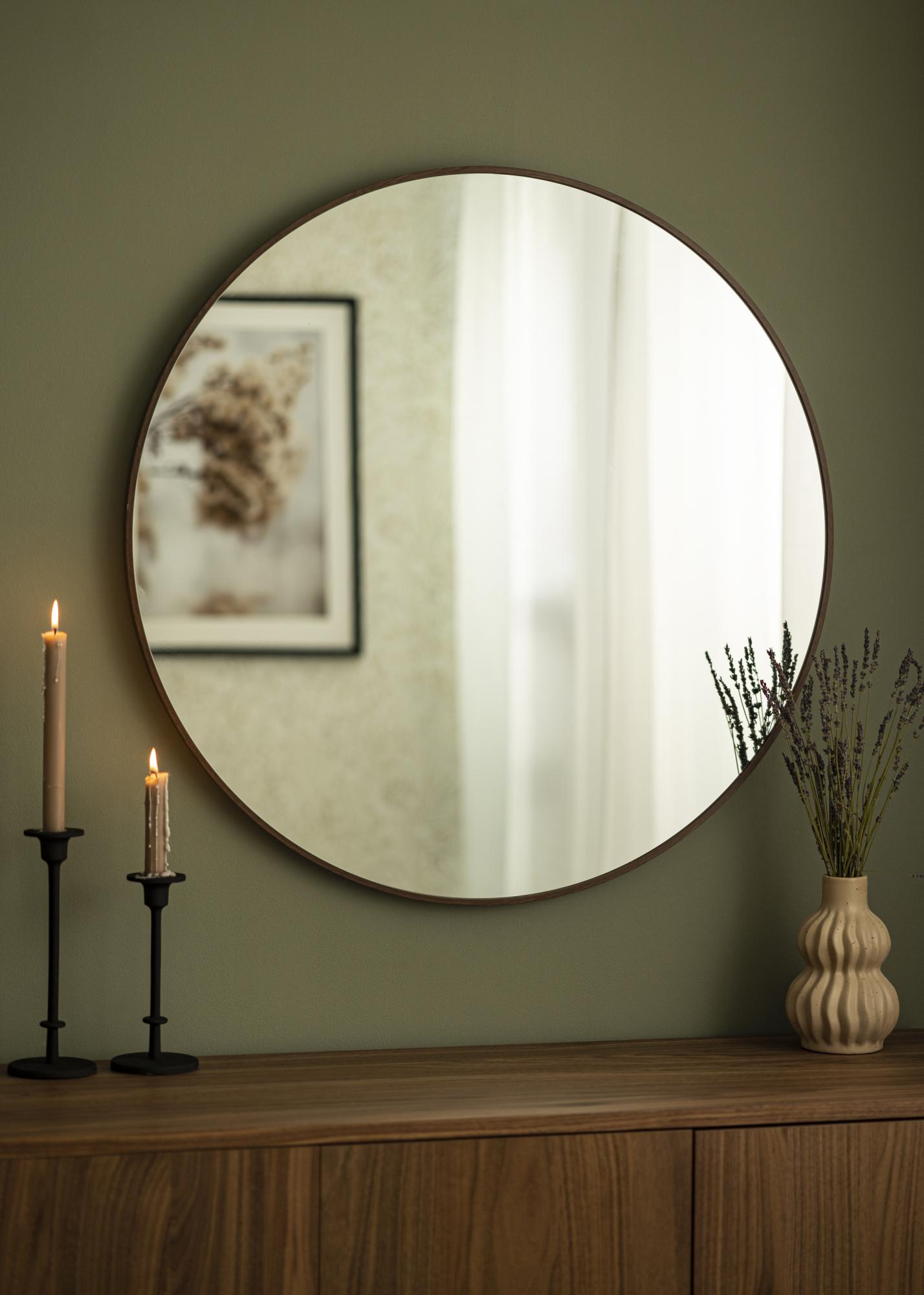 Открийте стилната елегантност с нашето стеново огледало, идеално за добавяне на усещане за простор и светлина във вашия дом. С впечатляващ диаметър от 80 см, това огледало става незабавно център на вниманието във всяка стая. Неговата кръгла форма придава мека и приветлива атмосфера, докато рамката му в цвят орех от алуминий добавя нотка на изтънченост.