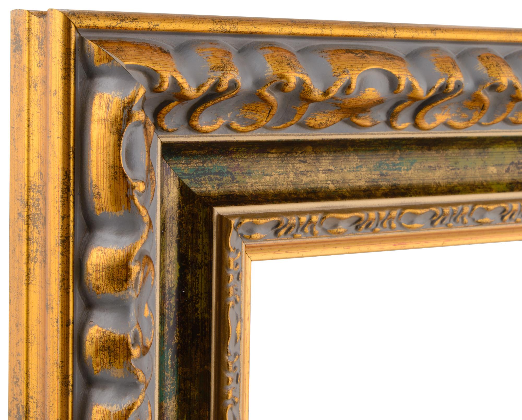 С помощта на правилното огледало можете да подобрите цялата стена! Това луксозно златно огледало има вълнуващ дизайн, който привлича вниманието. Предната част на дървената рамка има както голяма, така и по-малка лента с извити шарки, които са съчетани с износен участък. Повърхността е обработена, за да изглежда характерно остаряла. Тъй като се изработва според вашите предпочитания, можете да бъдете сигурни, че точно ще пасне там, където искате да бъде!