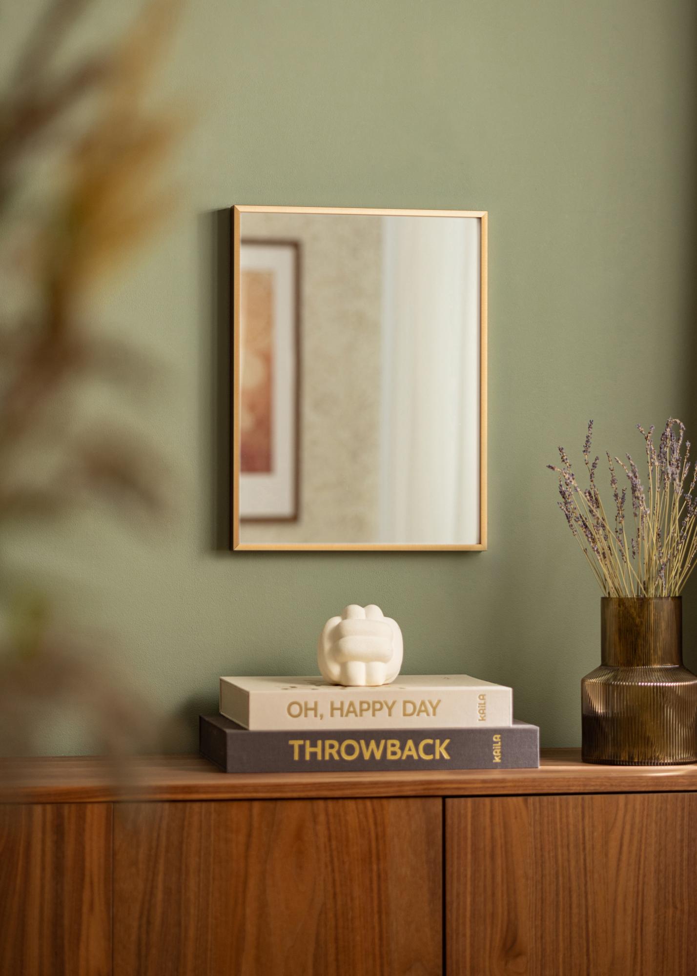 Рамката на огледалото е с ширина 7,8 мм и дълбочина 25,9 мм, което създава стабилно и здраво усещане без да компрометира минималистичното излъчване. Острите краища и простият дизайн подсилват съвременния характер на огледалото, което го прави перфектен избор за вас, ако оценявате изчистен интериор.