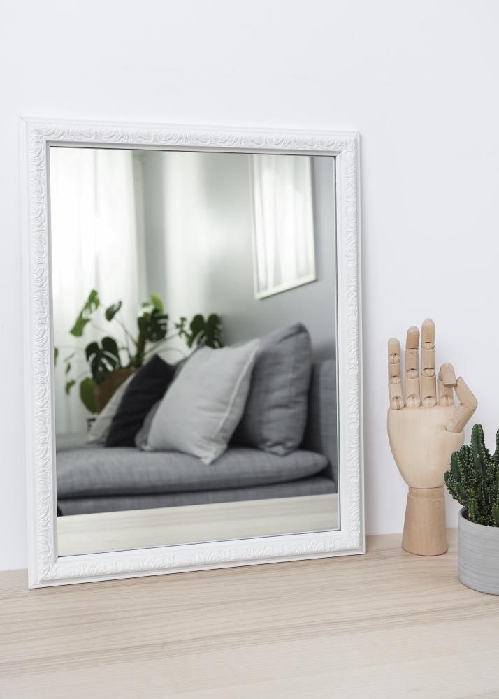 Стартирайте избора на рамка »Nost Vit се нарича серията стенни огледала. Рамката е богато декорирана с неправилни символи, които придават леко мистериозно впечатление.
