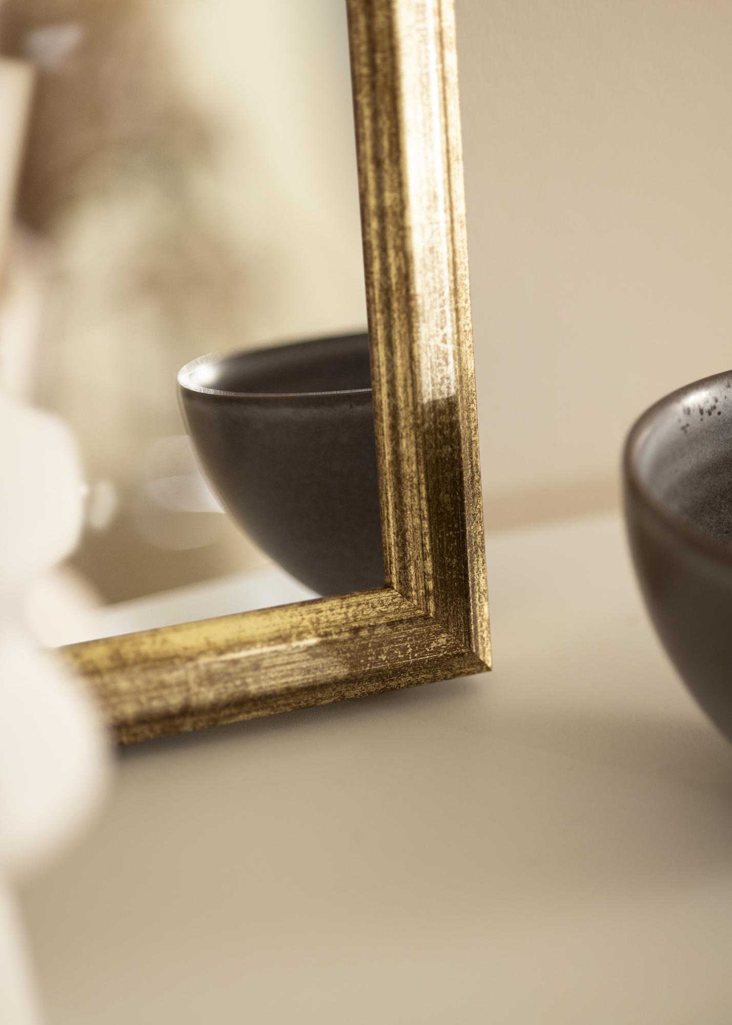 Направете стената красива с декоративно огледало, което повдига и осветява! Този модел има рамка в златен цвят, която е обработена, за да изглежда очарователно антична. Съчетавайте с подобни рамки за картини за цялостен красив вид.