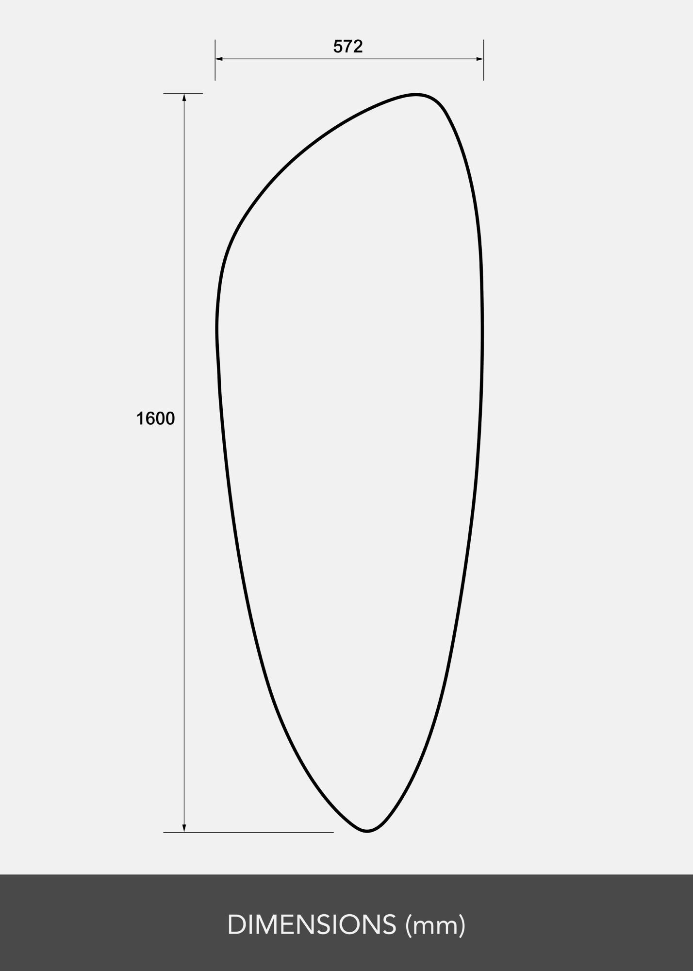 Открийте уникалния чар на нашето удължено огледало, перфектна комбинация от функционалност и естетика. Със своите щедри размери от 57x160 cm това огледало предлага отражение в пълен размер, което е идеално за спални, коридори или гардеробни. Огледалото има елегантна, удължена капкообразна форма, която придава съвременен и мек характер на стаята, а сивирането на огледалното стъкло добавя изискан и модерен нюанс, който хармонизира с разнообразие от интериорни стилове.