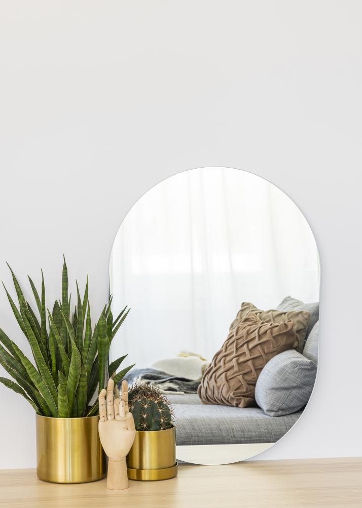 Стартирайте избора на рамка »Огледало без ръб с овална форма. Перфектен интериорен елемент за всекидневната или като по-малко огледало за коридора.
