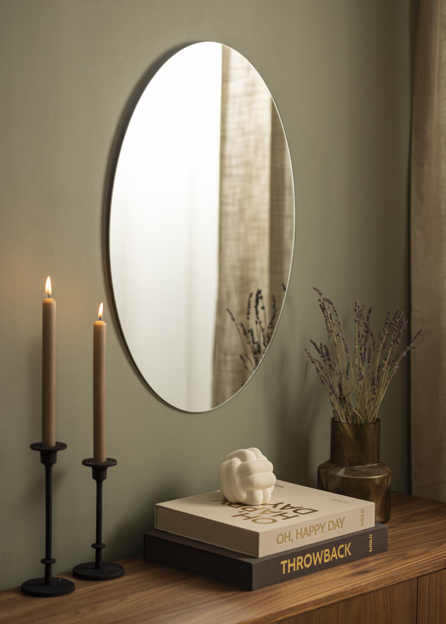 Стартирайте избора на рамка »Огледало без рамка с овална форма. Перфектен декоративен елемент в хола или като по-малко огледало за коридор.