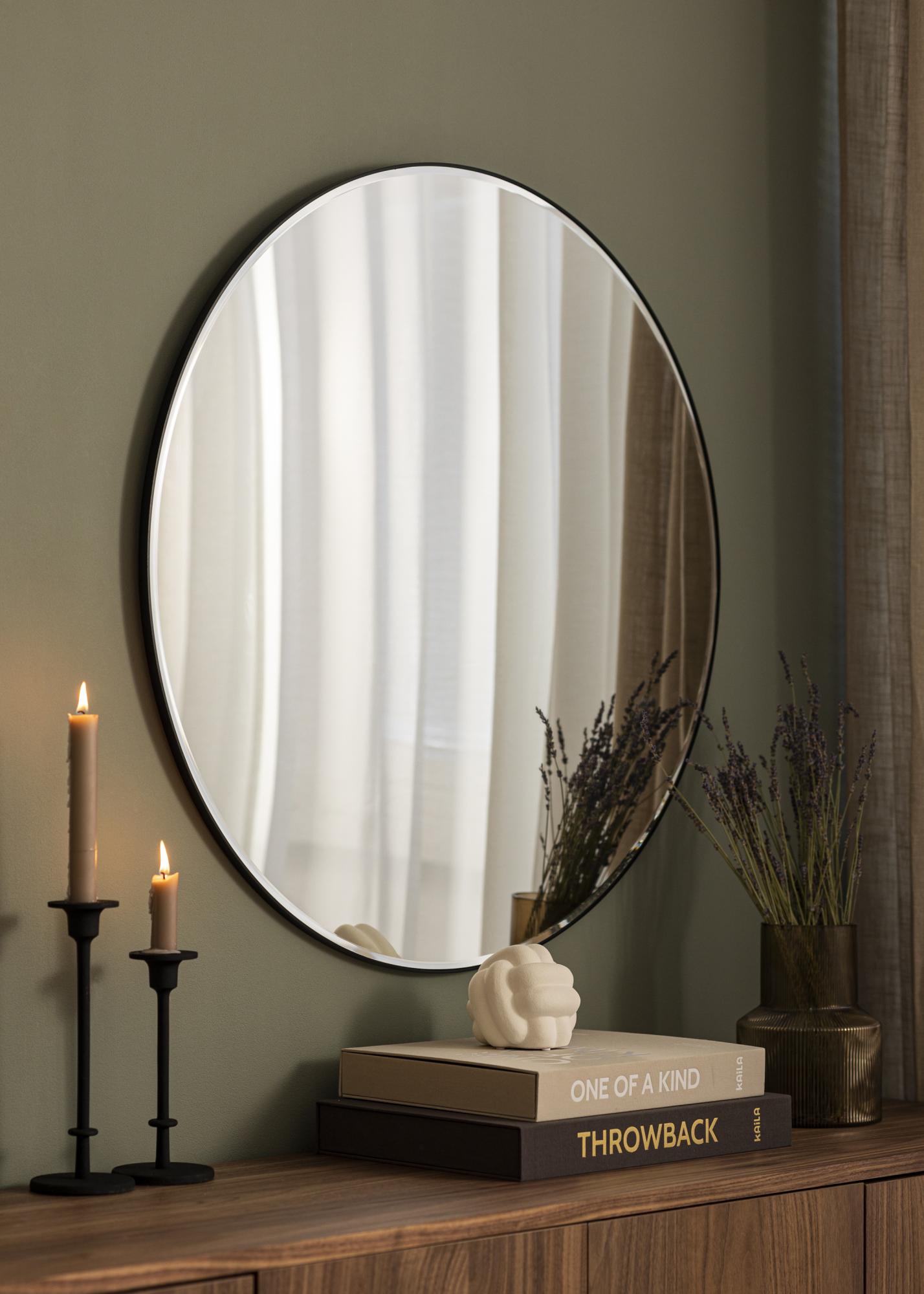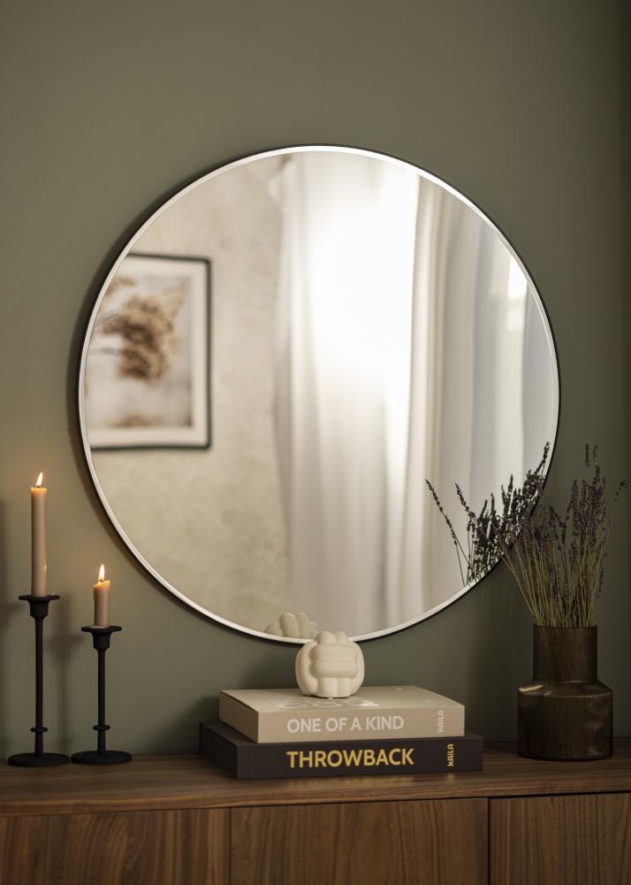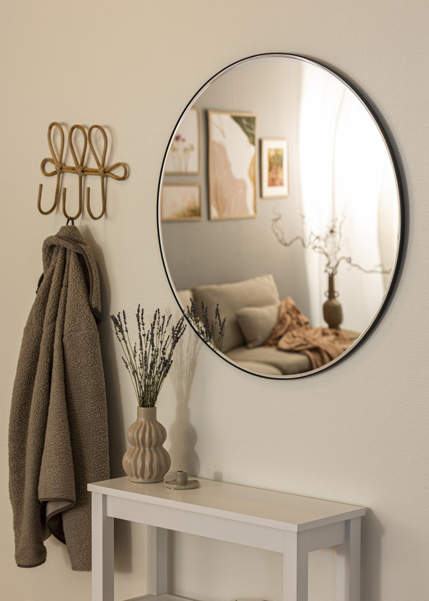 Открийте елегантната простота на нашето кръгло огледало, идеално за добавяне на нотка на изтънченост към вашия дом. С диаметър от 80 см, това огледало предоставя щедра отразяваща повърхност, която е идеална както за практическа употреба, така и като декоративен елемент. Огледалото на снимката е кръгло с черен кант и има семпъл, вечен дизайн, който допълва различни интериорни стилове.