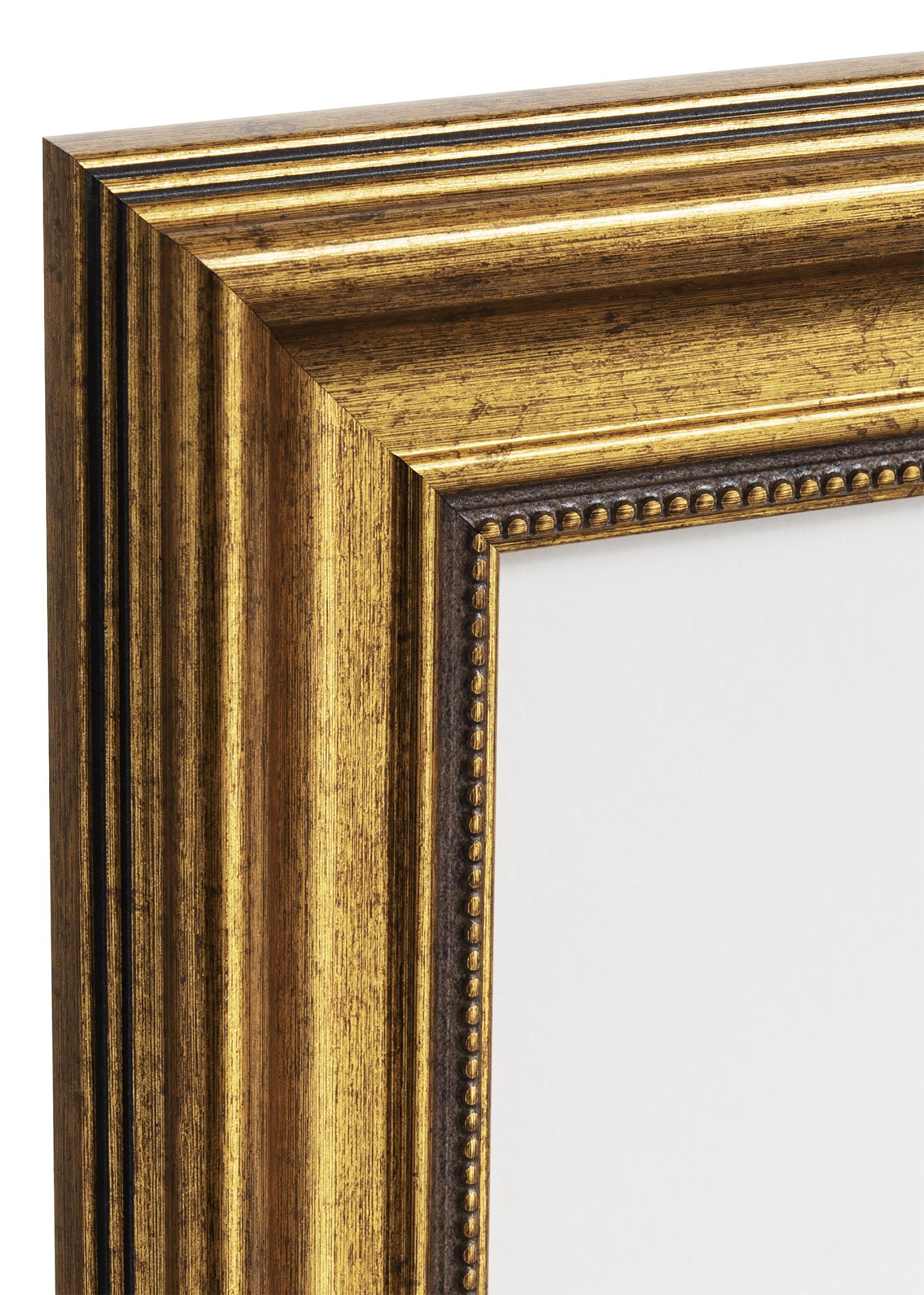 Това правоъгълно огледало е както функционално, така и много декоративно. Класическият стил и златистата рамка придават на огледалото топло и приятно излъчване.