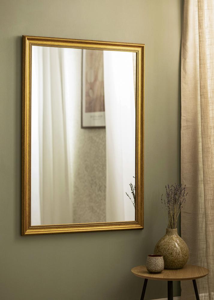Рококо е серия огледала с красива рамка в елегантен рококо стил. Рамката е в златист цвят, което придава на огледалото усещане за лукс. Декоративният и луксозен дизайн прави огледалото перфектен елемент за интериора в коридора, спалнята или хола. Огледалото се предлага в различни размери, така че да можете да изберете този, който най-добре пасва на вашия дом. Това огледало е с размери 70x100 см.