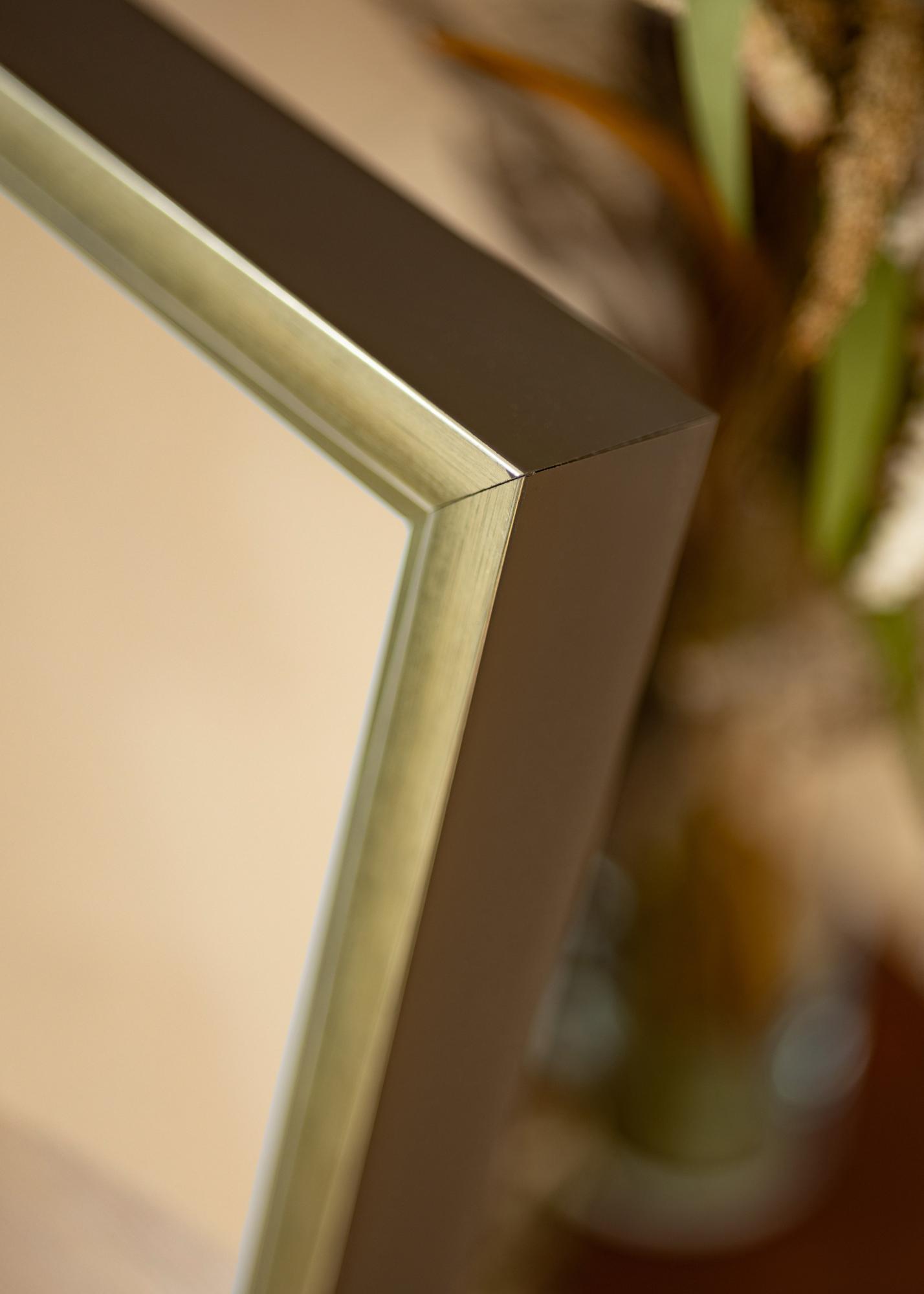 Класическо огледало, при което сами избирате колко голямо да бъде. Със своя широка и дълбока профил, това определено е огледало, което привлича вниманието. Огледалото има сребрист оловен цвят в приятни нюанси.
