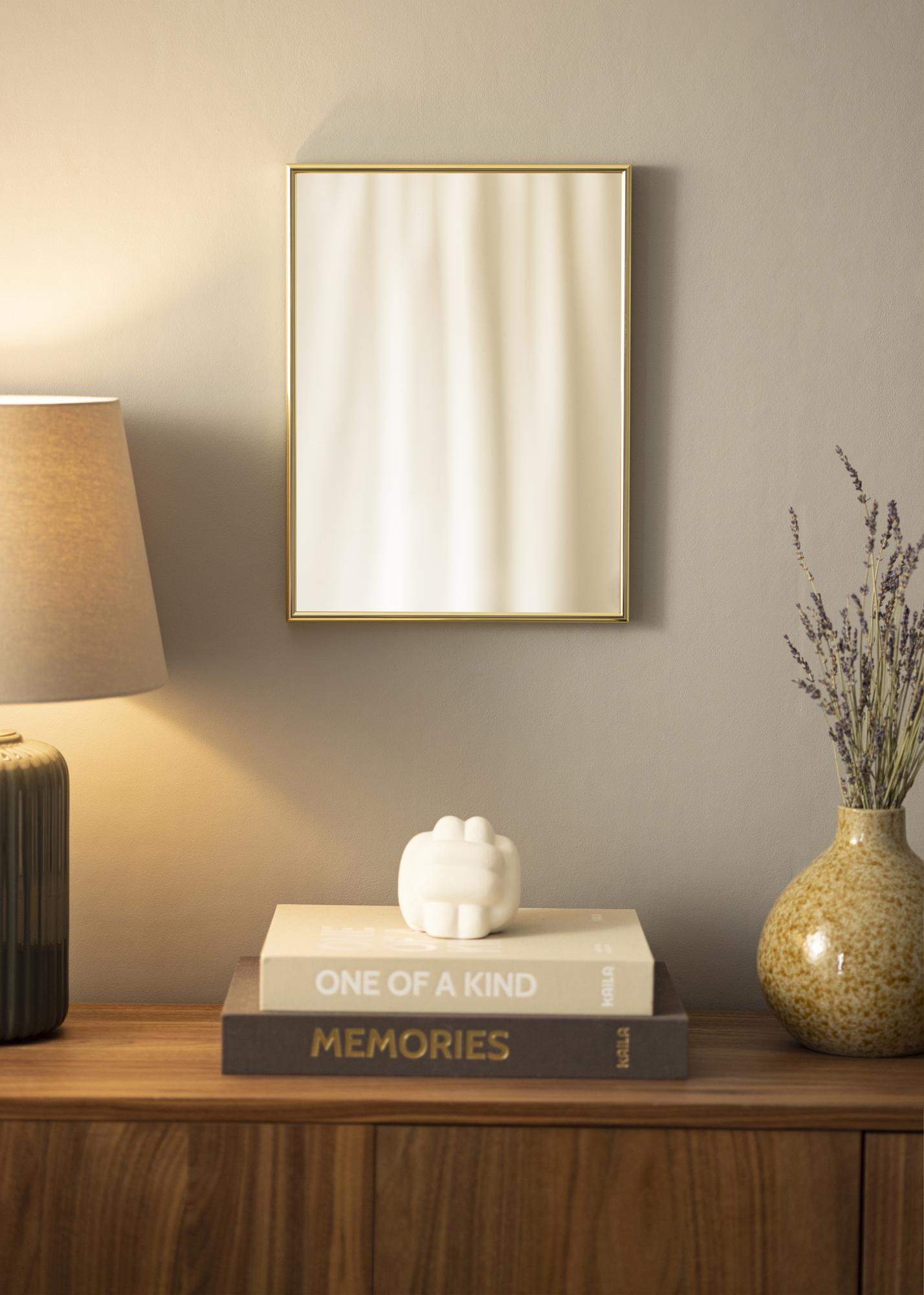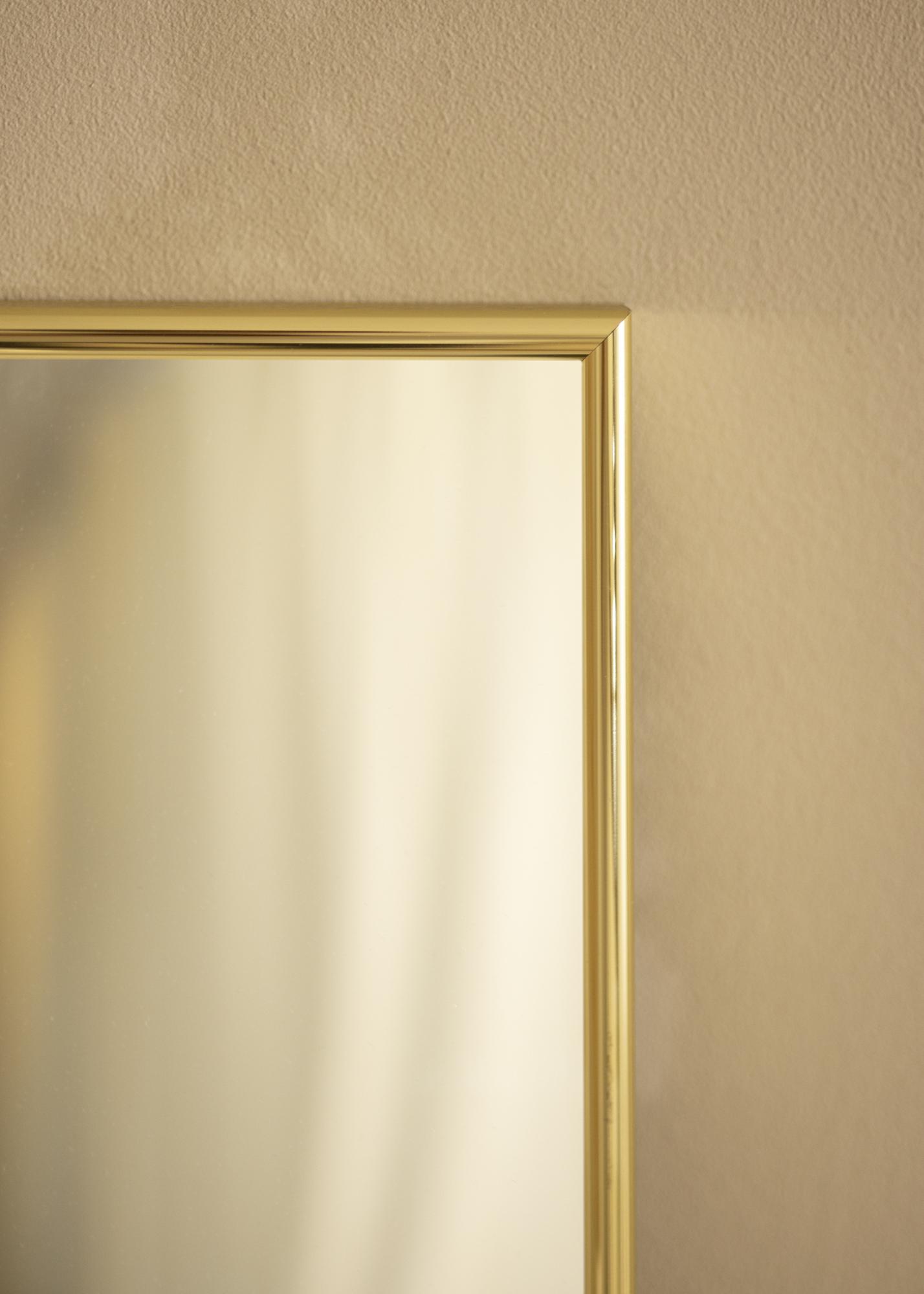 Sandhamn придава на вашето огледало ексклузивна рамка със своя високоблестящ златисто оцветен профил с дълбочина от цели 26 мм, което прави огледалото да се откроява малко от стената.
