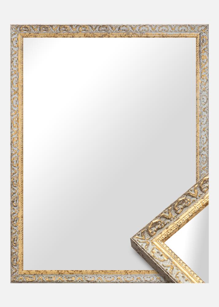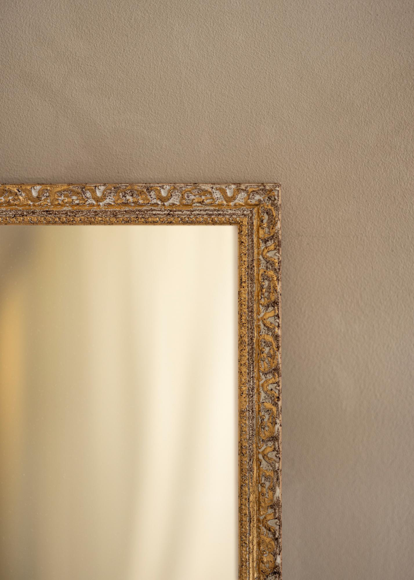 Стилен ретро вдъхновен рамка за огледало с високо качество и ексклузивен дизайн в сребро и злато, произведена в Италия.