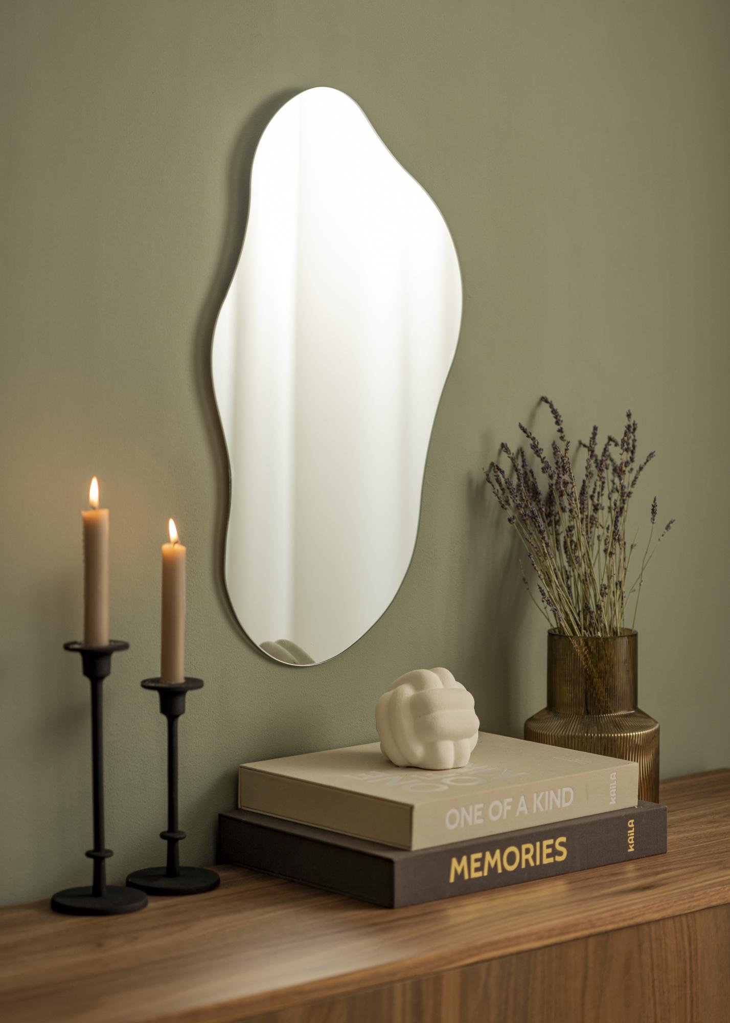 Търсите ли декоративно огледало за дневната? За входа в коридора? Или някъде другаде в дома, където искате красиво огледало да отразява дневната светлина? Soft Cloud е стенен огледало с размери 35x60 см, което пасва идеално във всяка стая. Огледалото има тънко огледално стъкло с дебелина само 4 мм и елегантна вълнообразна форма. Можете да монтирате огледалото на стената с помощта на закачалките на гърба.