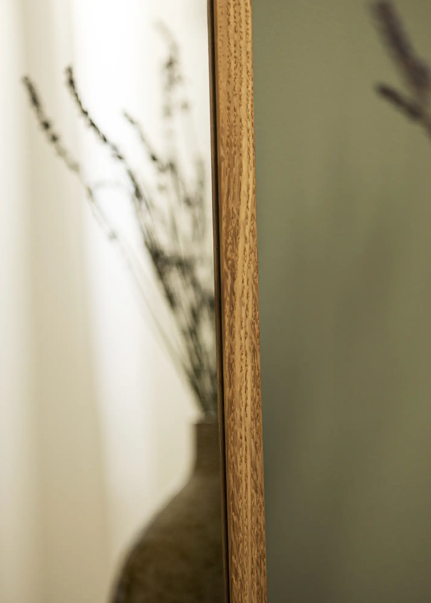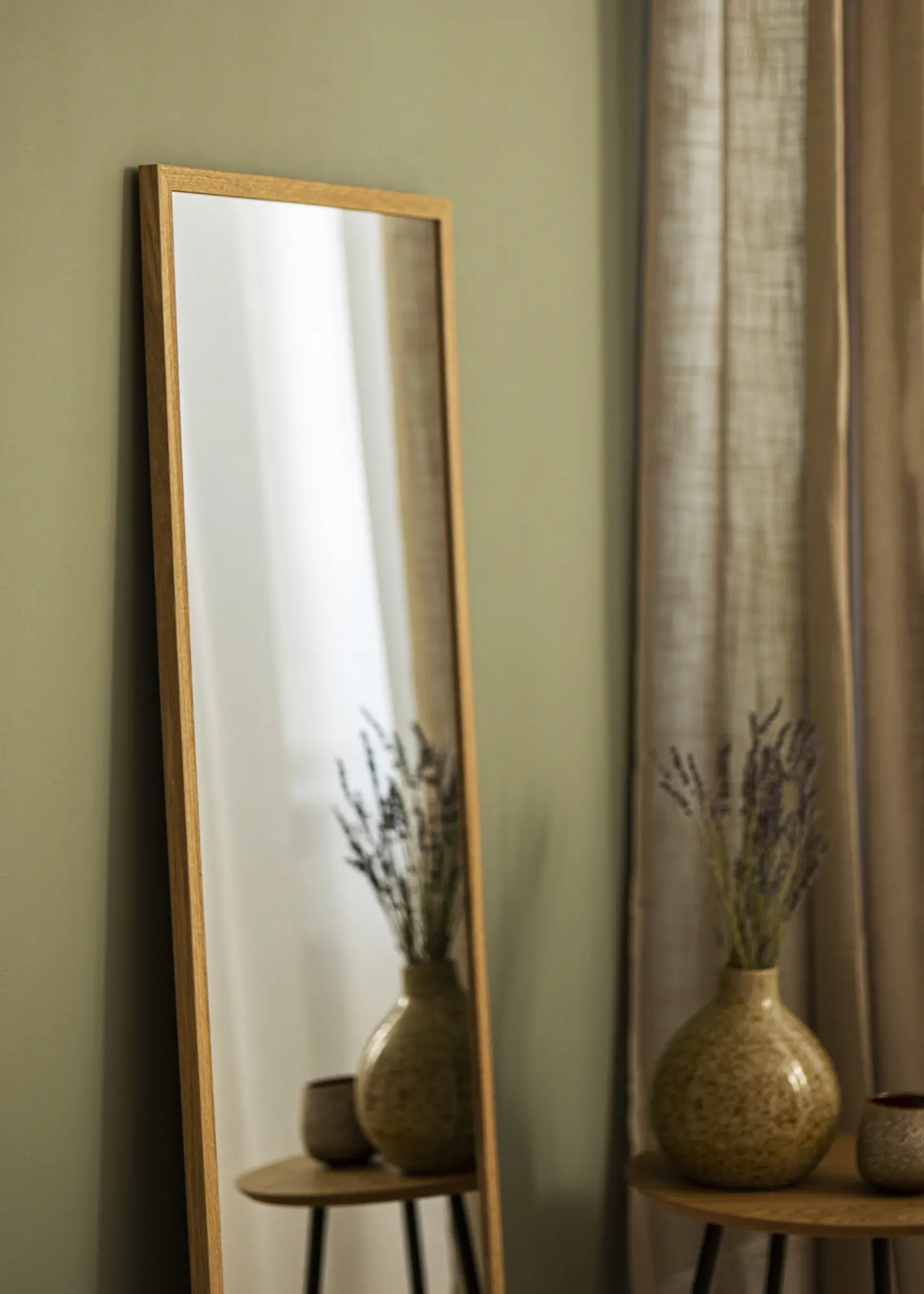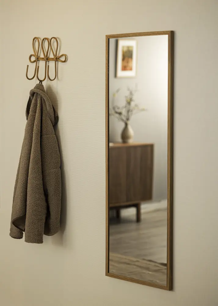 Със своята стояща ориентация, огледалото е лесно за поставяне в различни стаи, независимо дали е в спалнята, за да създаде ъгъл за обличане или в коридора за последен поглед преди излизане. Здравата дъбова рамка не само предоставя стабилна структура, но и естествен чар, който допълва както модерни, така и традиционни интериорни стилове.