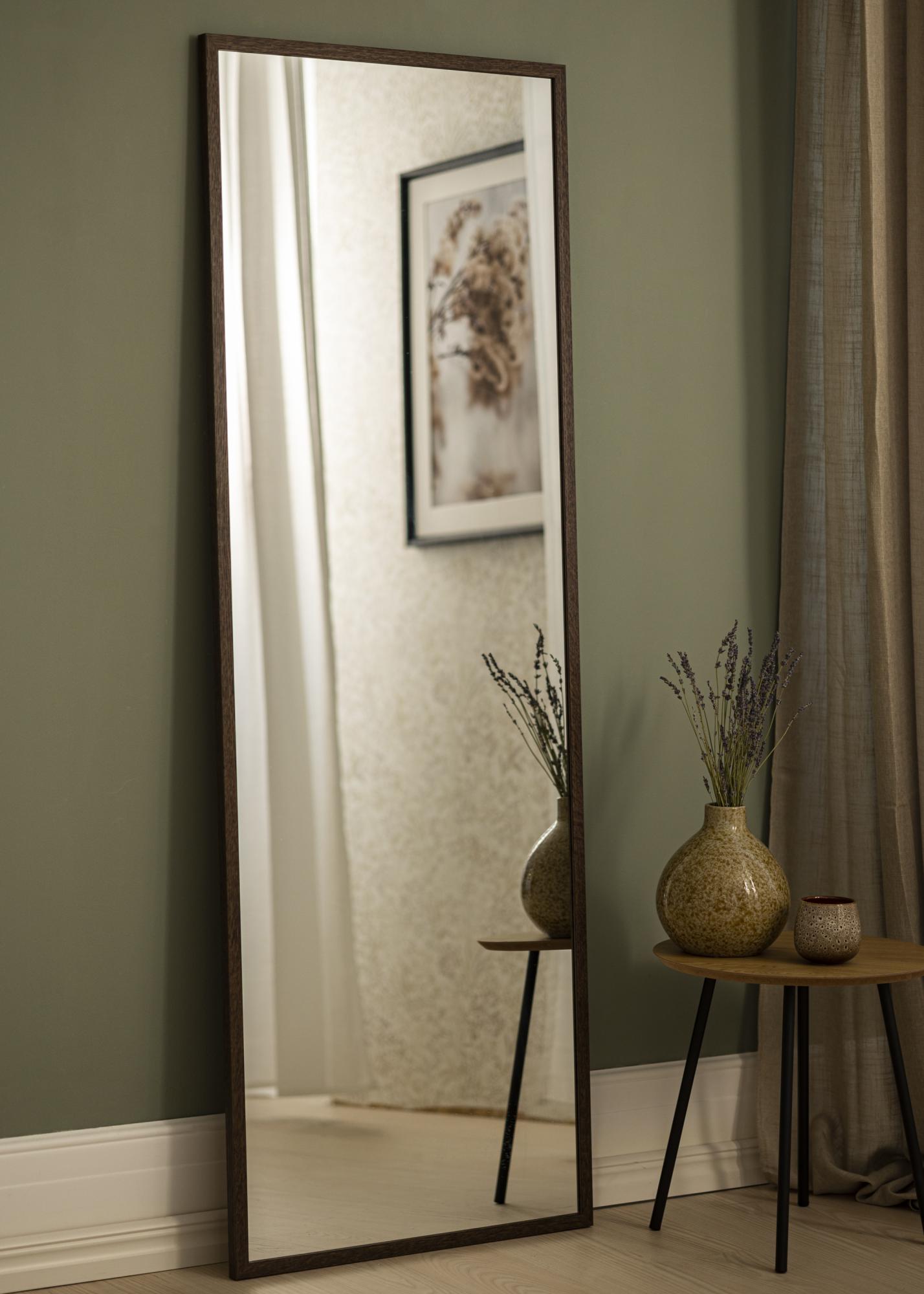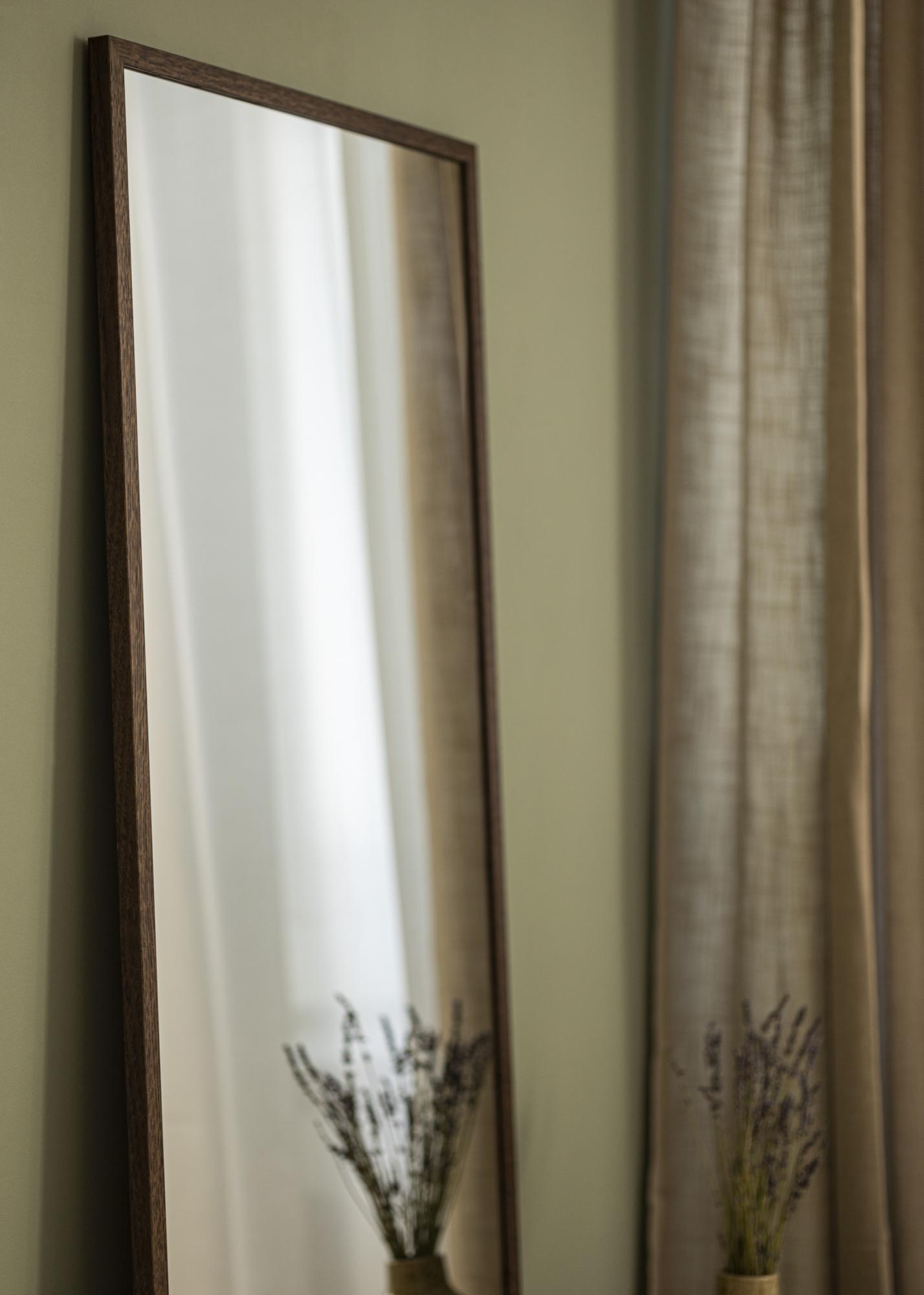 Рамката на огледалото е изработена от истинско дъбово дърво и има дълбок тъмен дъбов нюанс, който незабавно привлича погледа. Дебелата рамка придава усещане за стабилност и допринася за цялостната здравина на конструкцията на огледалото. Това огледало е не само практичен аксесоар, но и произведение на изкуството, което допълва различни вътрешни стилове, от традиционните до модерните.