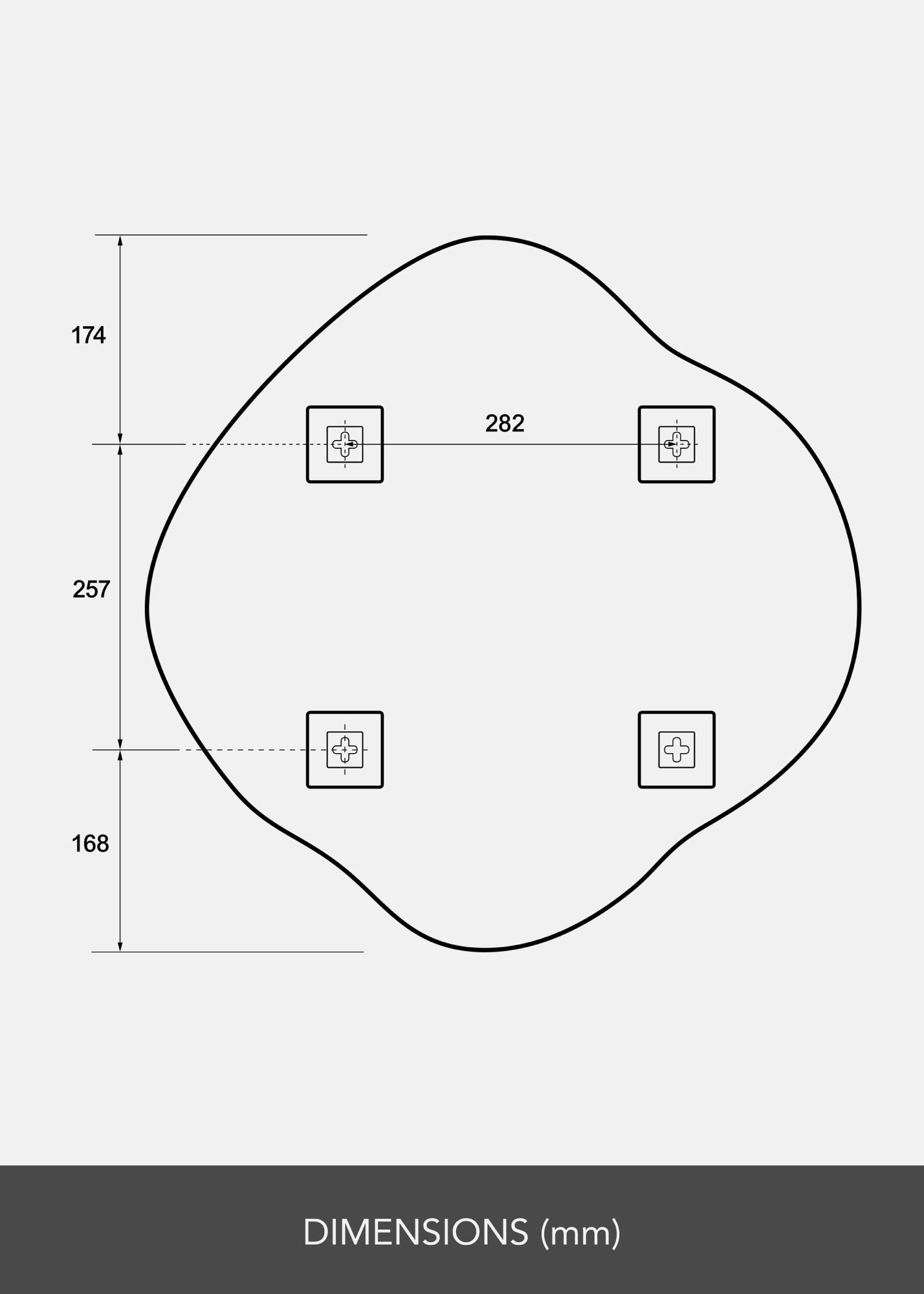Открийте елегантното и универсално огледало, което е проектирано да се вписва във всяка стая на вашия дом. Със своите щедри размери от 60x60 см това огледало предлага практична и декоративна функция. Неговият уникален вълнообразен контур придава органичен оттенък и създава съвременно усещане във вашия интериор.