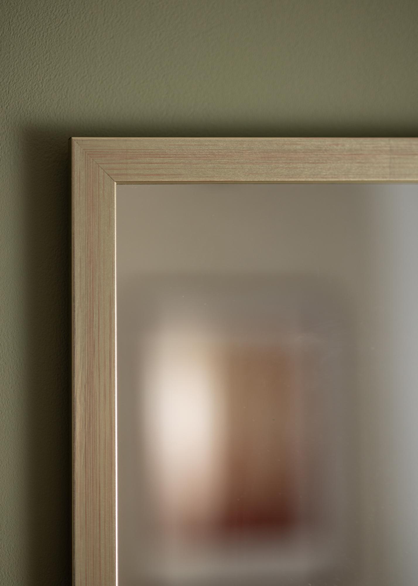Това огледало е изработено от айосово дърво, боядисано в стилен сребърен нюанс. Рамката е широка 22 мм и има права профил, което създава донякъде изчистен цялостен вид. Поставете огледалото в коридора, спалнята или хола и го оставете да отразява светлината от лампите и прозорците по красив начин.