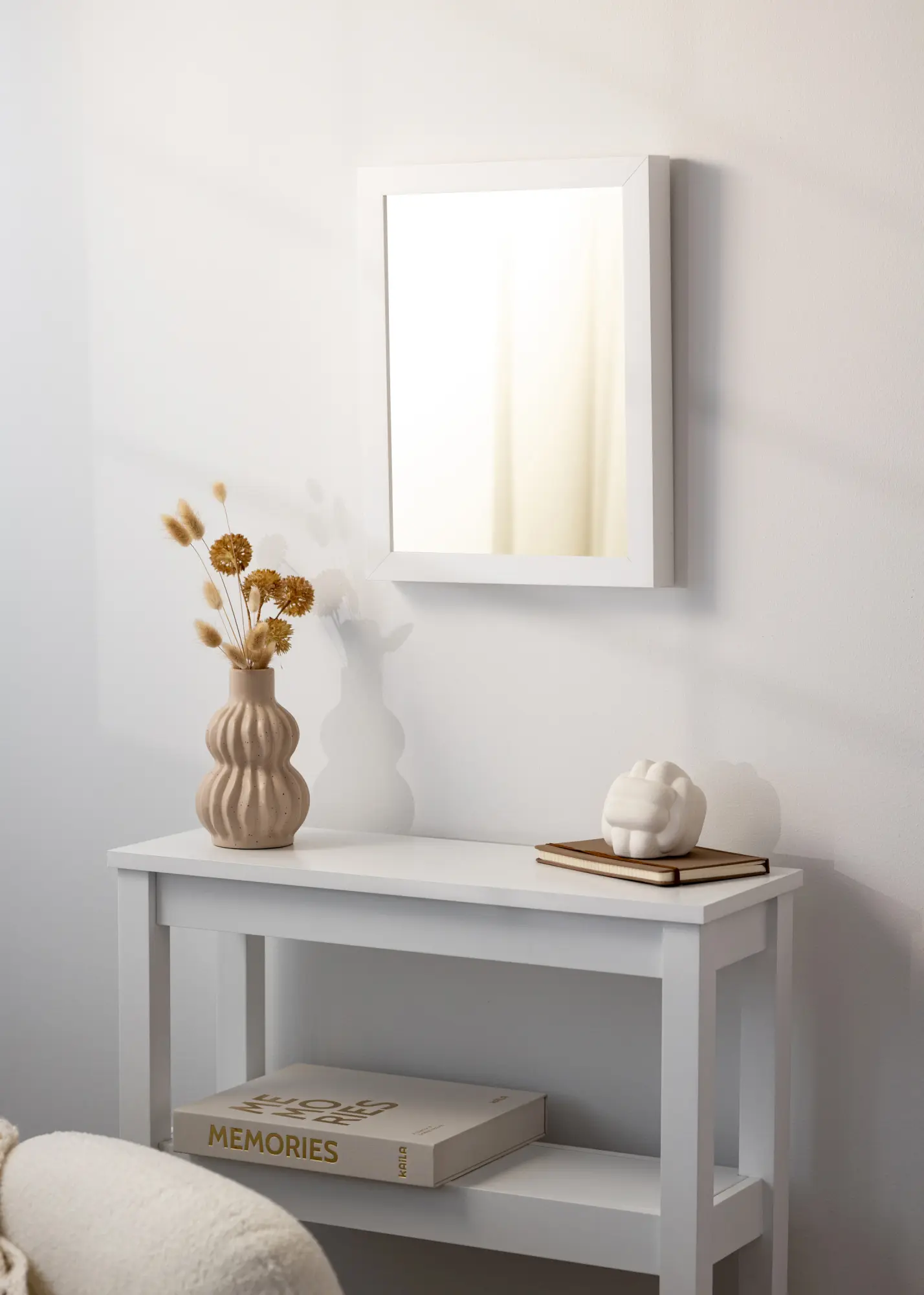 Това огледало има елегантен бял цвят, който се вписва в повечето стилове на интериора. Рамката с ширина от 30 мм придава на огледалото стилна и дискретна рамка, докато дълбочината от 50 мм създава здраво и солидно впечатление. Изработено от бор, огледалото предлага както издръжливост, така и естествено усещане, което допълва неговия модерен дизайн.