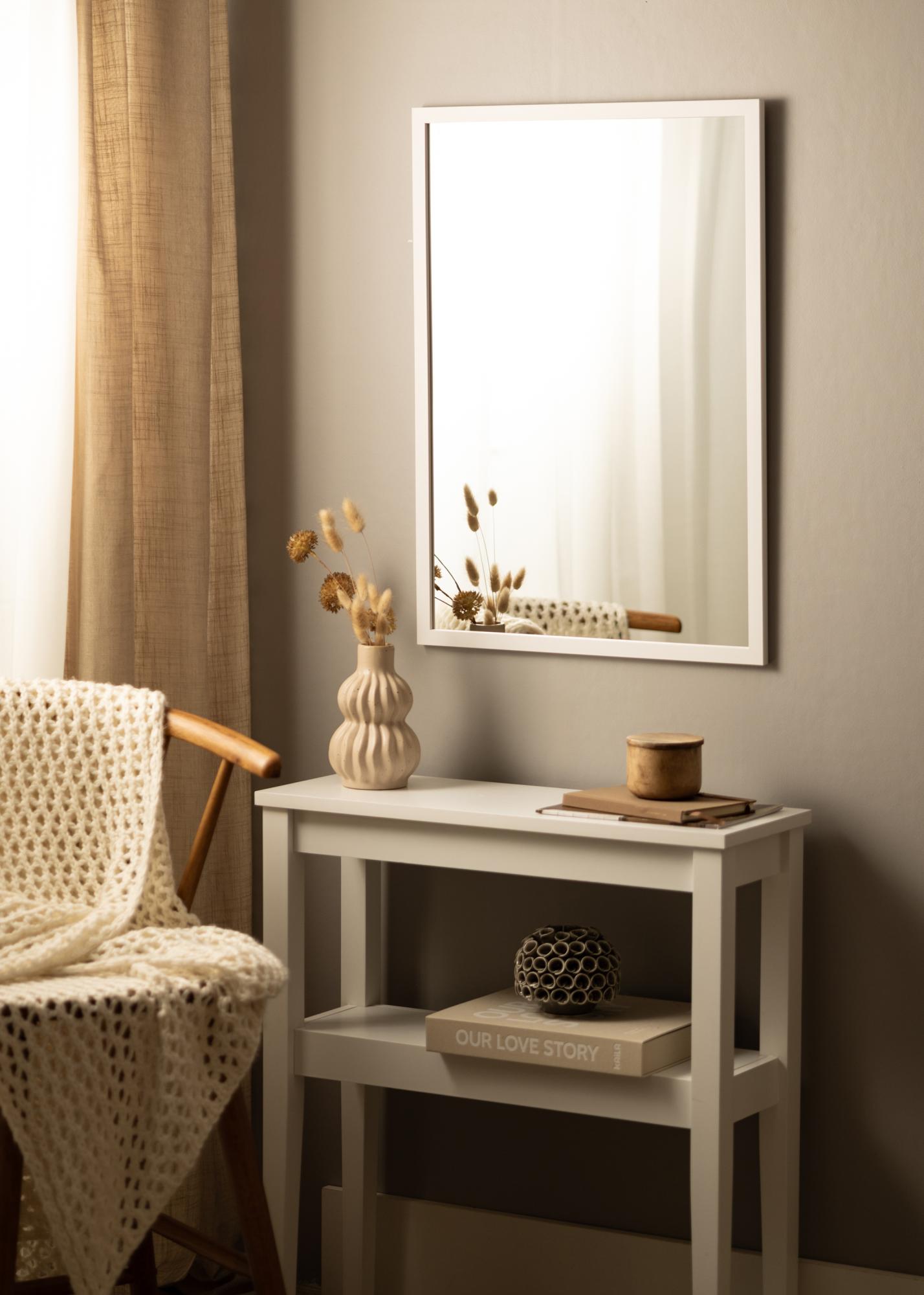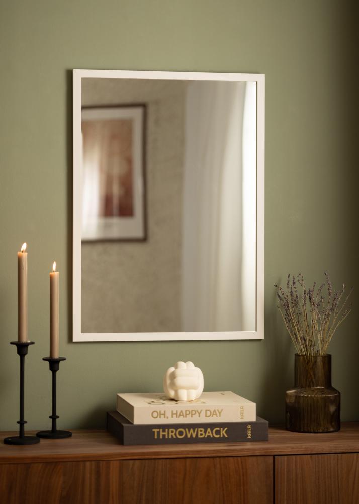 Това огледало има класически вид с 22 мм широка и 15 мм дълбока рамка от бяло боядисано дърво. Традиционният облик се усилва от неоцветеното огледално стъкло на огледалото.