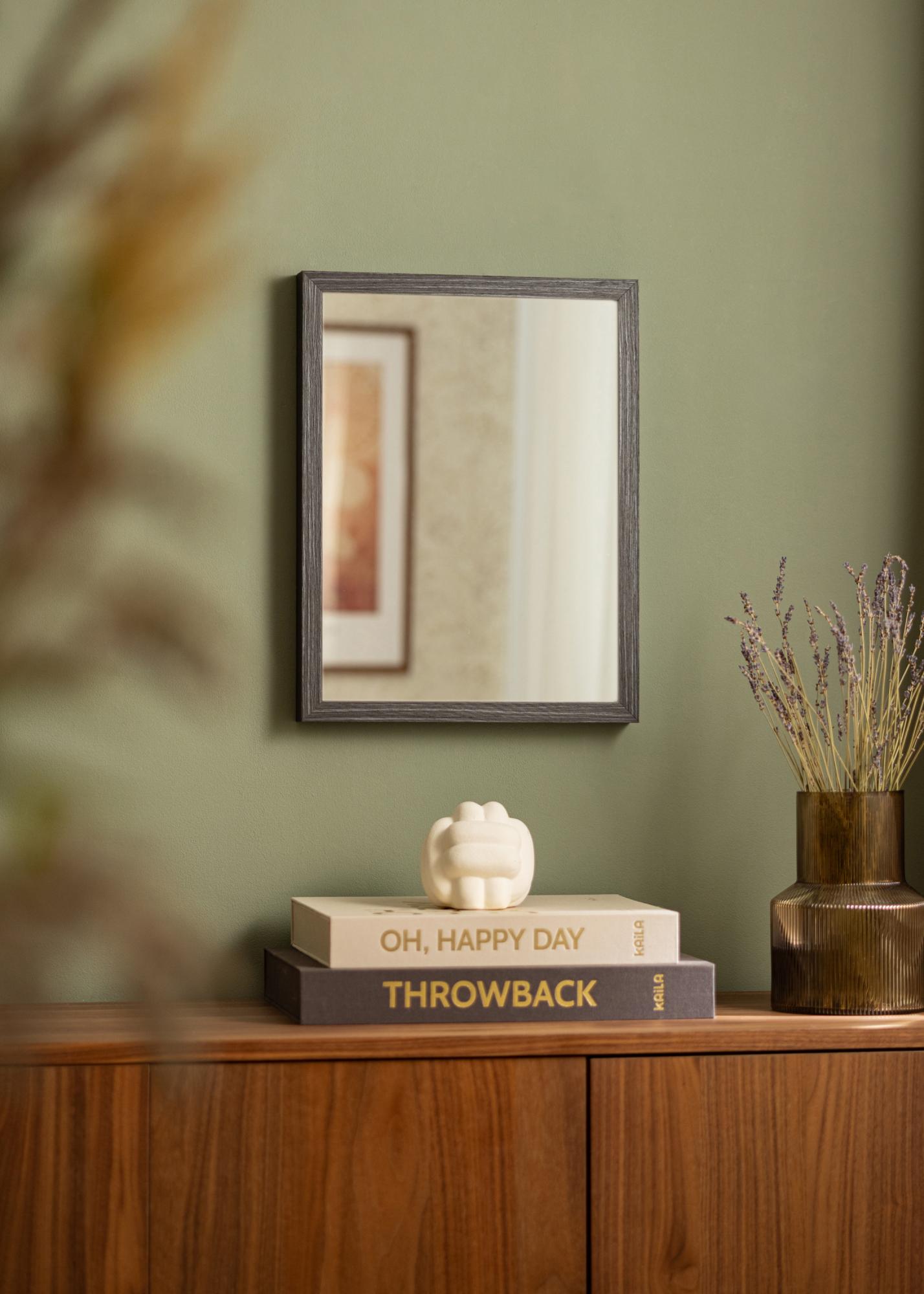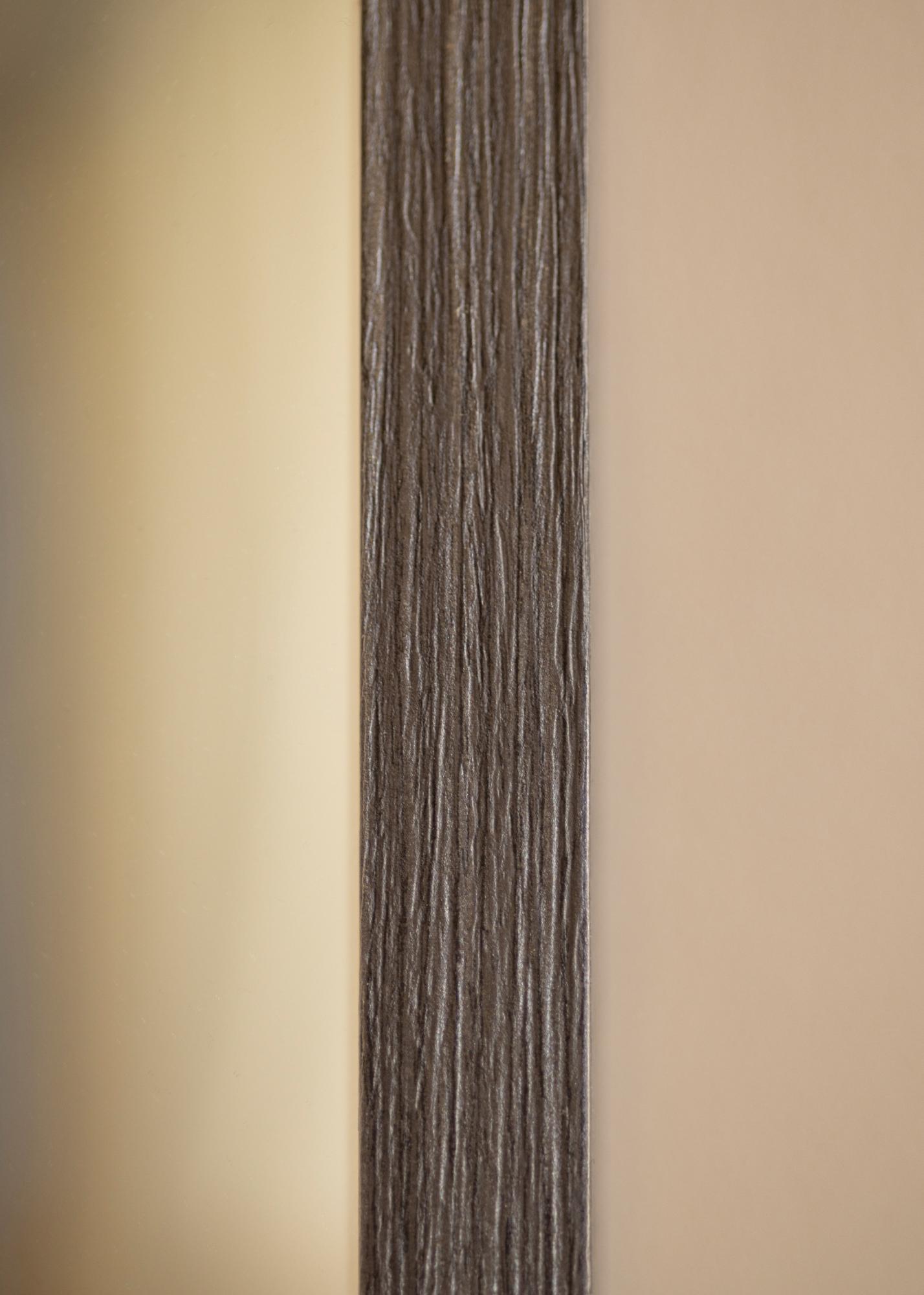Огледало Wood Selection Grey I е огледало по поръчка, изработено от нас, за да отговаря на вашите нужди. Със своя сив цвят и тъмно байцово дървесно покритие това огледало предлага елегантен и вечен дизайн, който се вписва в повечето интериорни стилове. Естествената текстура на дървото минава по ръбовете и придава на огледалото уникален характер, като в същото време матовият завършек усилва автентичното усещане за дърво.