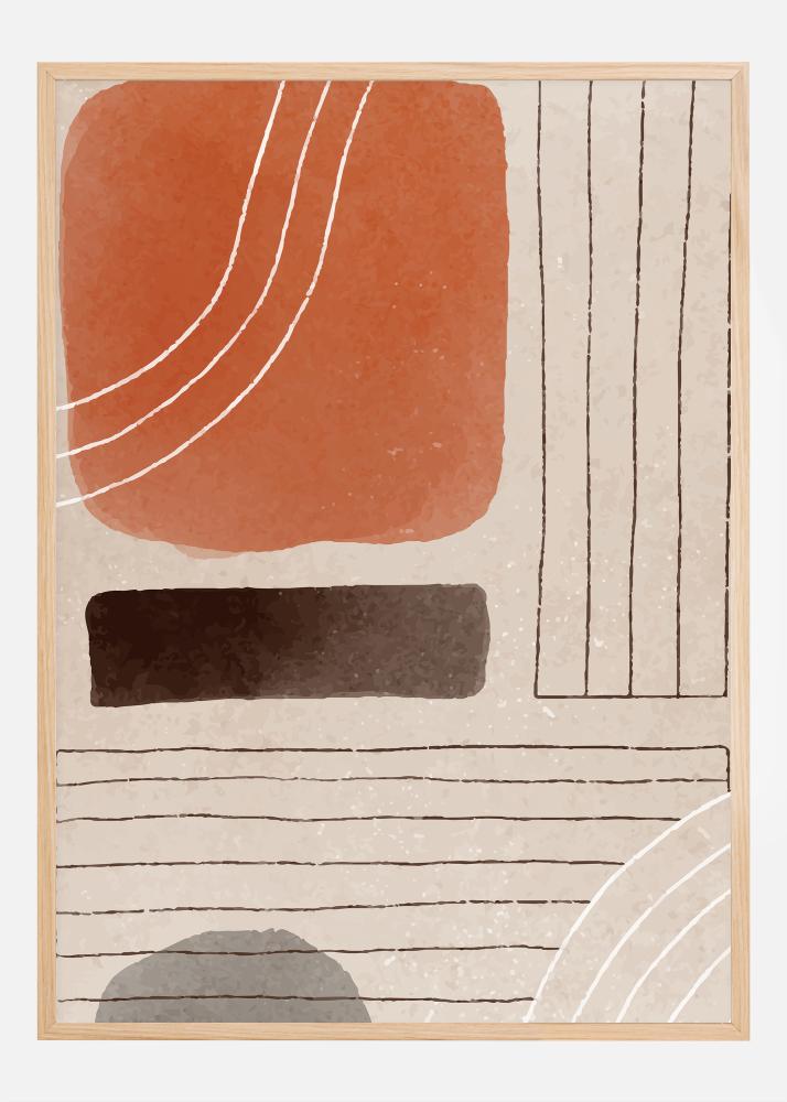 Този художествен плакат използва абстракция и геометрия, и предизвиква дълбоко чувство на размисъл. В мотива се намира голям, пълен теракотен квадрат, който окачва дизайна, обградена с бели извити линии, които създават впечатление за движение и мекота. Този топъл, земен цвят създава незабавно усещане за топлина и гостоприемство.
